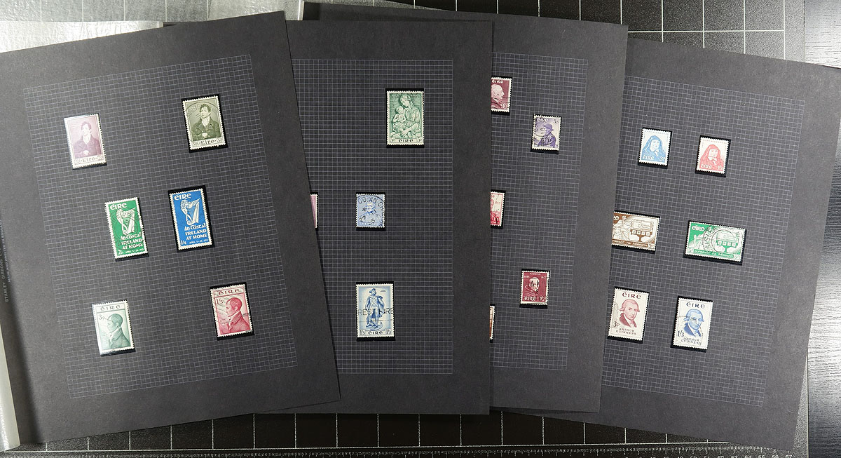 Accumulation of used Ireland, 1922-2009, containing roughly 1,500 stamps in roughly 30 album or stock pages. The lot generally ranges from Scott #1/1831, including back of the book issues, noting singles and sets cataloguing in the $10 range and up, including the popular bird set from the late 1990's to the early 2000's. Owner's 2011 Scott value for the lot totals US$1,391.00 ($1877.00 CDN), leaving better finds for the dedicated collector. A few small faults with a few of the stamps, with mild duplication for most issues throughout, overall fine to very fine. Estimate =