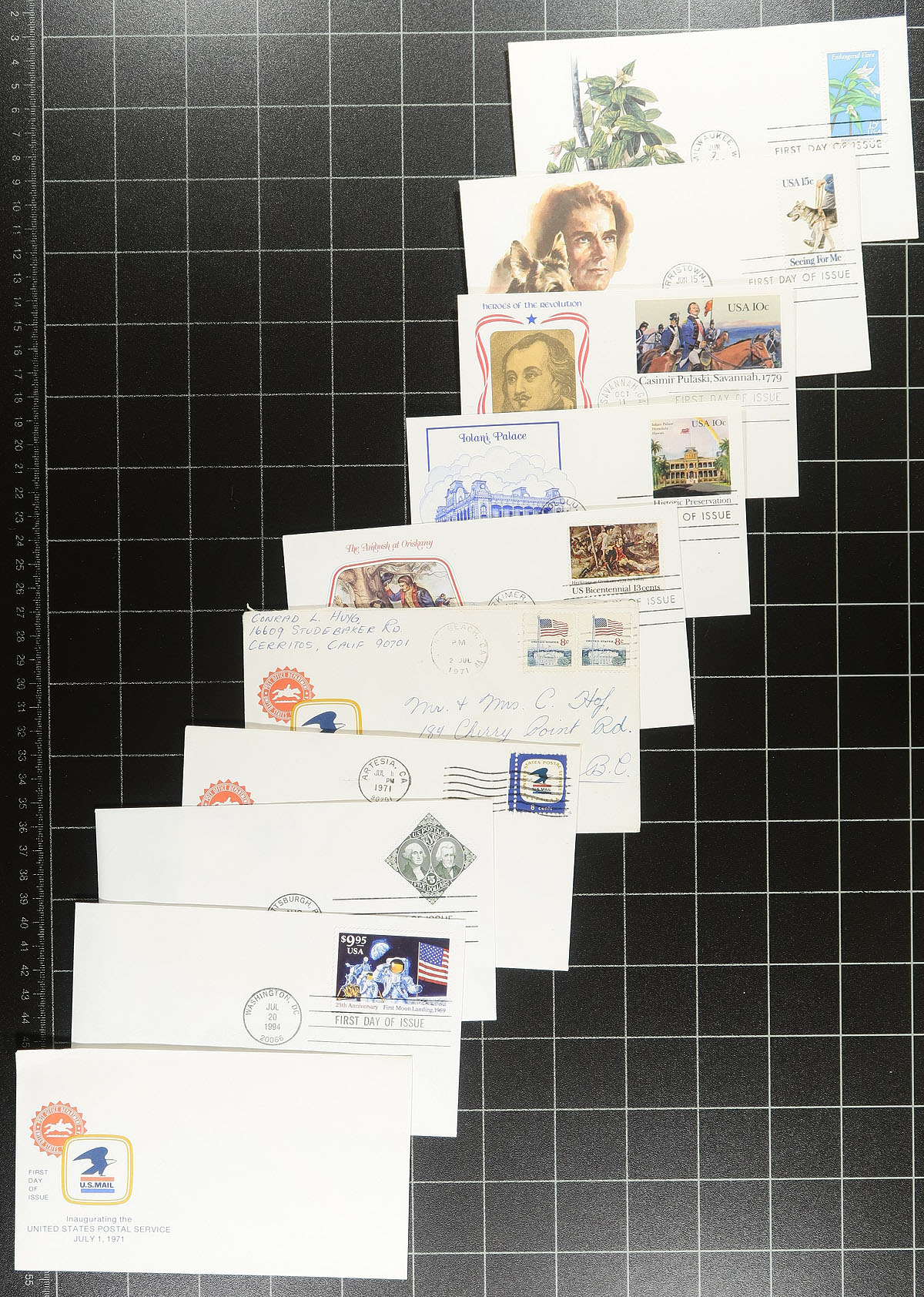 Collection of roughly 450 covers, 1970's-1990's, containing primarily first day covers along with commemorative and event covers, with singles, sets, booklet panes, souvenir sheets, and high denomination frankings, noting many Art Craft and Fleetwood cachets. A nice clean lot for collectors (especially topical and thematic), and for dealers looking to fill out dollar boxes. Estimate =