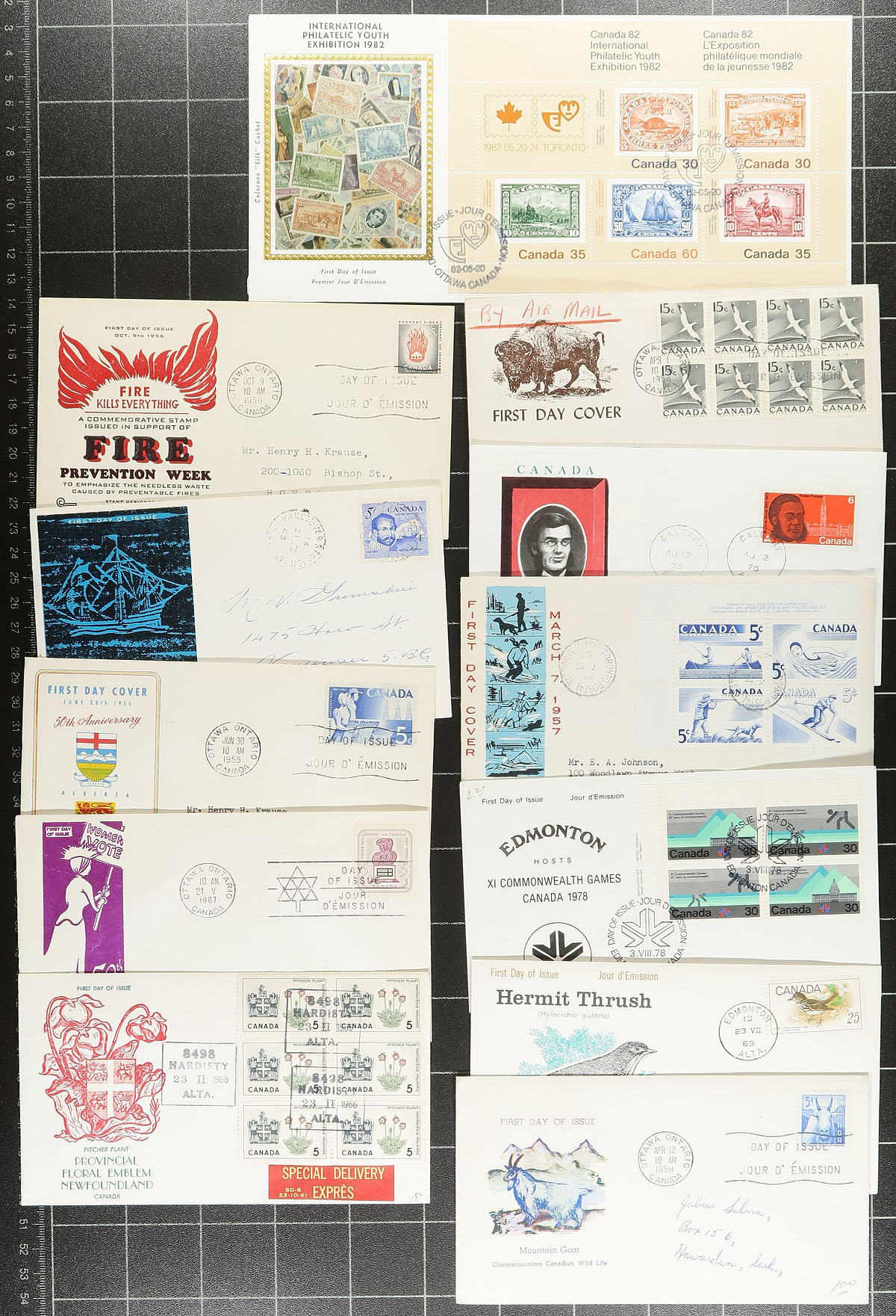 First Day Covers. Lovely group of roughly 400 private cachet first day covers, 1950's-1983, loose in a box, noting mostly single frankings along with a few other types. The earlier covers have cachets from makers Caneco, Cole, JCR, Cole. Rose Craft, Capital, with modern cachets from NR and Colorano silks. A lovely lot ideal for collectors and dealers alike. Estimate =