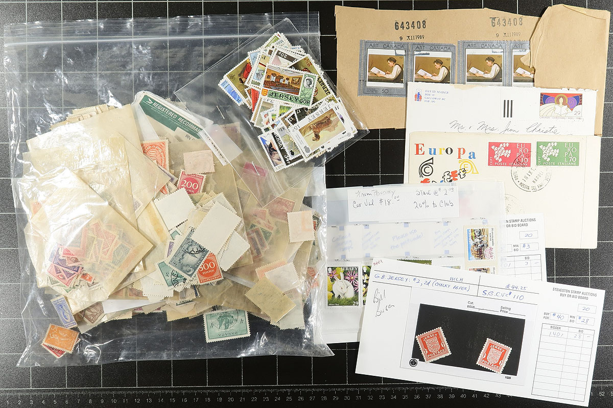 Carton full of thousands of worldwide stamps in a variety of formats including stock and album pages, a few sparsely filled albums, glassines, loose material in boxes, etc. It appears the majority of material ranges from the 1930's onwards noting better representation from Ireland, New Zealand, Switzerland, just to name a few, making this a nice project for the worldwide sorter and collector. A who knows what one will find lot. Estimate =