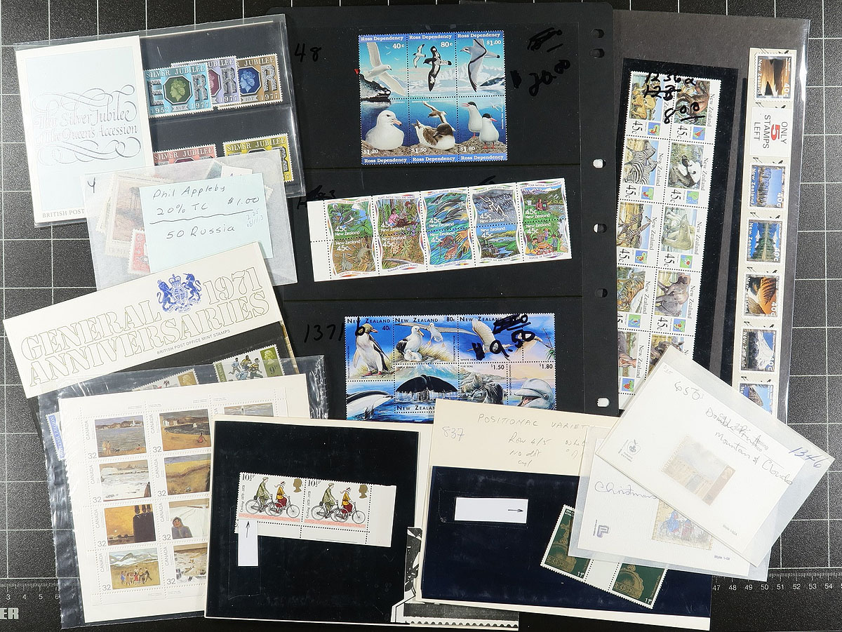 Carton full of thousands of worldwide stamps in a variety of formats including stock and album pages, a few sparsely filled albums, glassines, loose material in boxes, etc. It appears the majority of material ranges from the 1930's onwards noting better representation from Ireland, New Zealand, Switzerland, just to name a few, making this a nice project for the worldwide sorter and collector. A who knows what one will find lot. Estimate =