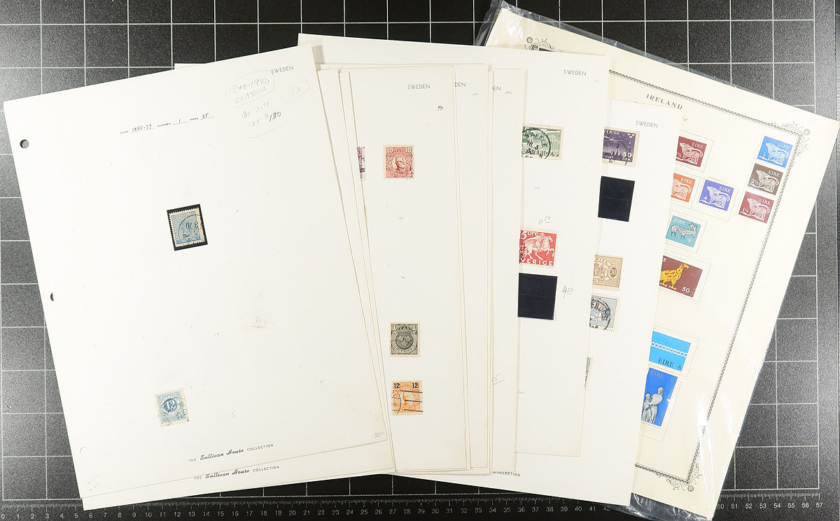 Carton full of thousands of worldwide stamps in a variety of formats including stock and album pages, a few sparsely filled albums, glassines, loose material in boxes, etc. It appears the majority of material ranges from the 1930's onwards noting better representation from Ireland, New Zealand, Switzerland, just to name a few, making this a nice project for the worldwide sorter and collector. A who knows what one will find lot. Estimate =