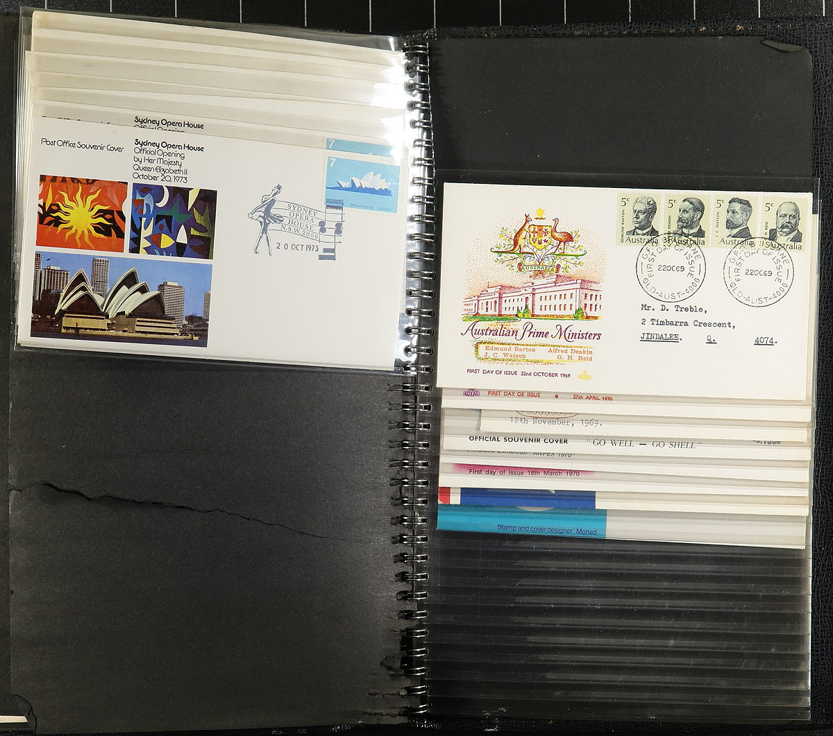 Group of roughly 375 Australia first day covers, 1960's-2008, in 5 albums with some loose material. We note singles, sets, and high denomination frankings, noting private cachet makers WCS, Royal, Parade Covers, just to name a few. A nice lot for the cover collector, overall very fine. Estimate =