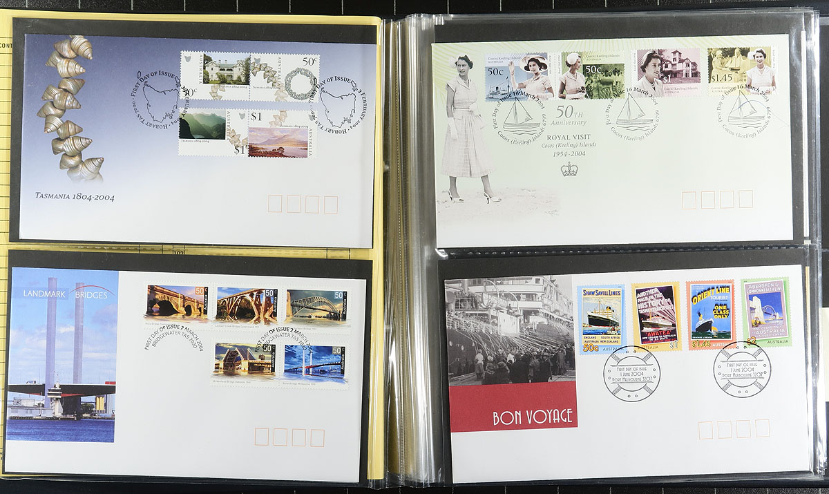 Group of roughly 375 Australia first day covers, 1960's-2008, in 5 albums with some loose material. We note singles, sets, and high denomination frankings, noting private cachet makers WCS, Royal, Parade Covers, just to name a few. A nice lot for the cover collector, overall very fine. Estimate =