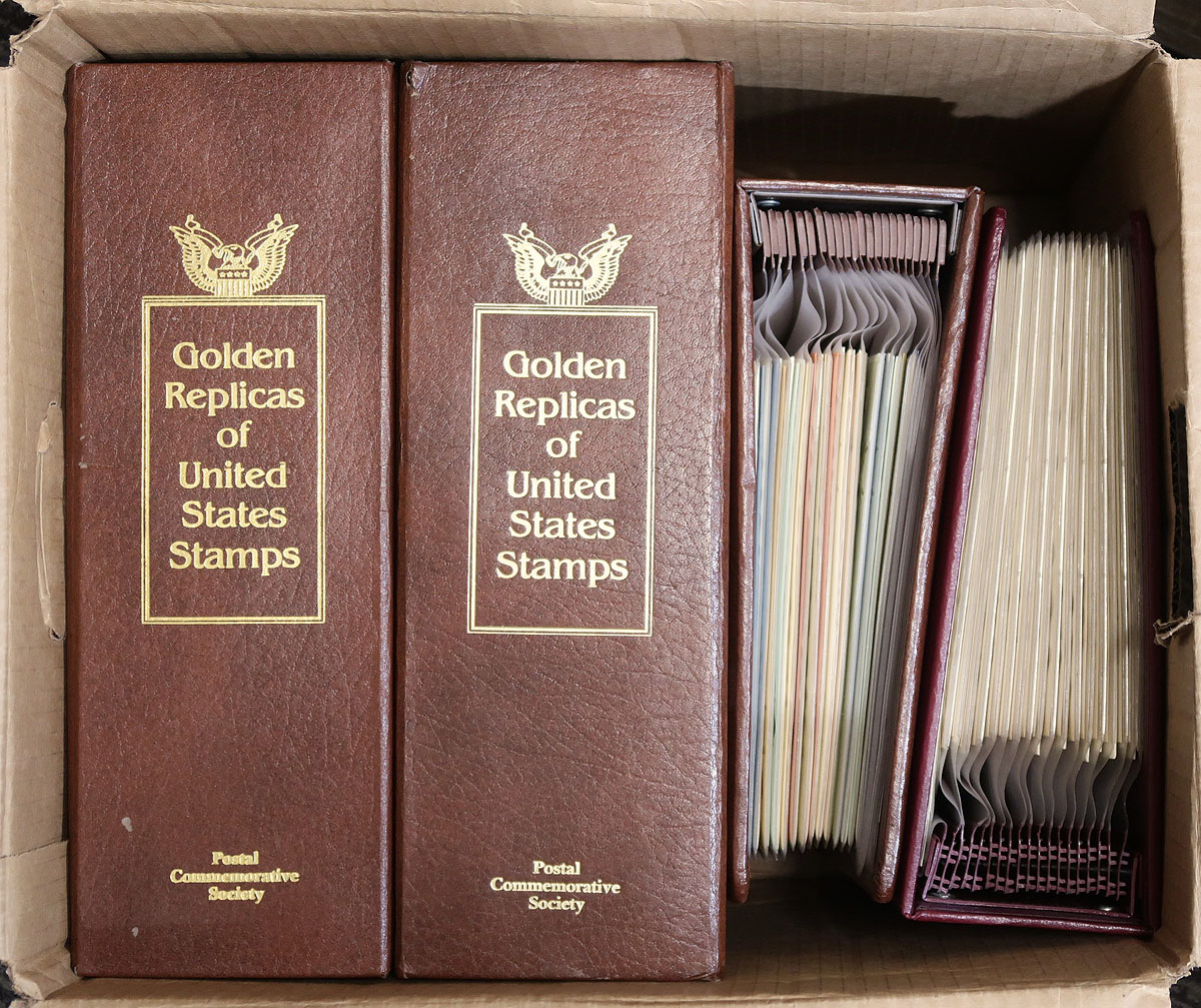 Nice thematic collections "The Golden Replicas of the United States" in 4 volumes, containing roughly 250 different covers with issues from the 1980's. A clean group and ideal for the United States or thematic / topical collector. Estimate =
