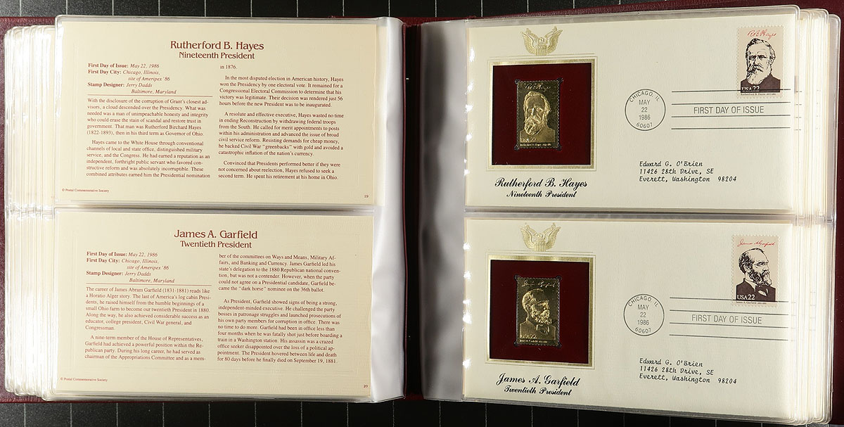 Nice thematic collections "The Golden Replicas of the United States" in 4 volumes, containing roughly 250 different covers with issues from the 1980's. A clean group and ideal for the United States or thematic / topical collector. Estimate =