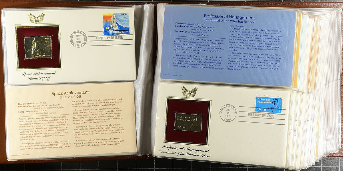 Nice thematic collections "The Golden Replicas of the United States" in 4 volumes, containing roughly 250 different covers with issues from the 1980's. A clean group and ideal for the United States or thematic / topical collector. Estimate =