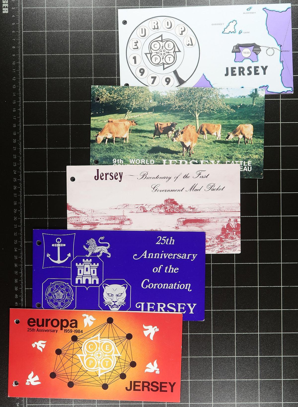 Accumulation of primarily never hinged Jersey, 1959-1997, containing roughly 1,200 stamps in a variety of formats including several album or stock pages, glassines, presentation packs, etc. This fairly well organized lot generally ranges from Scott #1/778, including several sets, blocks and plate blocks, 17 presentation packs (from the 1970's-1980's), and "back of the book" items. A spot check indicated some sets and blocks catalogue $10 and up, with the owner's 2005 Scott catalogue value totaling US$619.00. Almost all of the stamps on album pages are in hingeless mounts, with most of the material never hinged. A nice accumulation for collectors and dealers alike. Estimate =