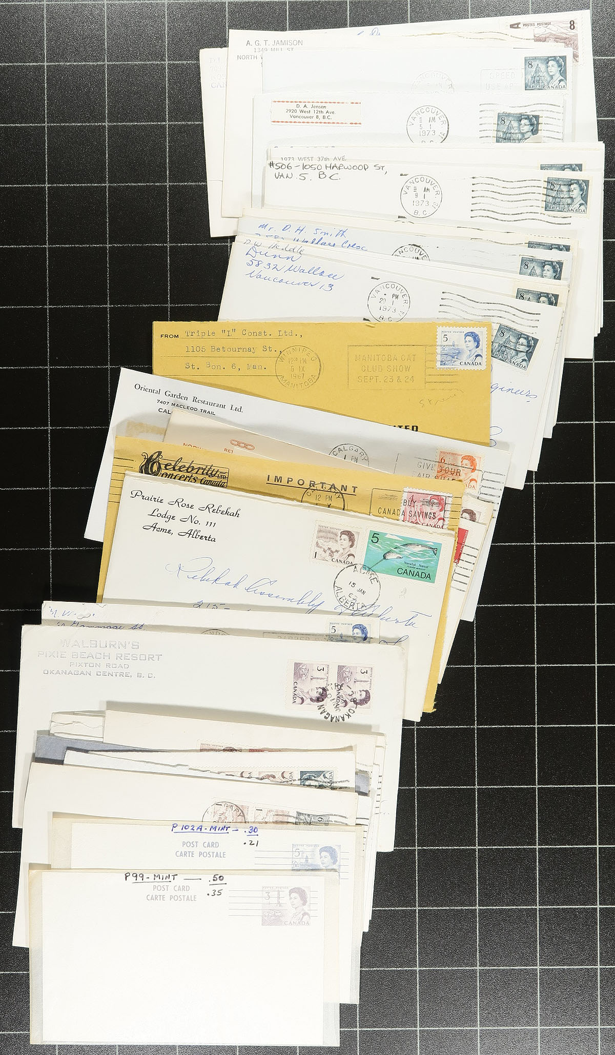 Large accumulation of used Centennial issues, with well over 10,000 low denomination stamps (1c-8c), on and off paper in a few formats. The lot includes roughly 8,000 stamps in bundles of 100 each, neatly organized in a small box, along with several glassines organized by denomination, plus a box of a few thousand on paper stamps, along with a few covers to round out the lot. Completely unchecked by us for the host of possible papers, varieties, taggings and other aspects these issues are known for. A nice winter project for the specialist. Overall fine to very fine. Estimate =
