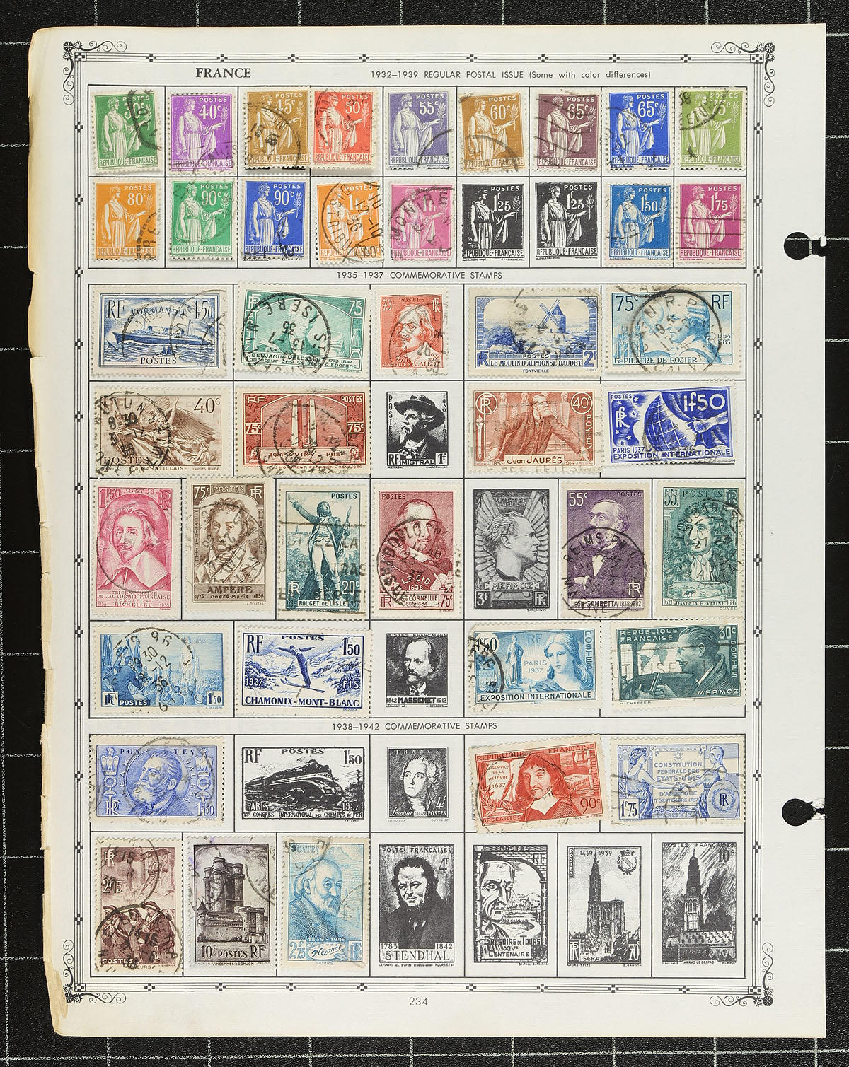 Very large old time collection of primarily used Worldwide stamps, 1880's-1960's, containing several thousands of stamps on several double sided Aristocrat album pages. The collection ranges from A to Z countries with a spot check indicating better representation from United States, Europe (noting France, Austria, Switzerland, and Eastern European regions in particular), Scandinavia, South America, and so much more. The collection also contains scattered mint throughout, along with souvenir sheets, stamps in glassines in pages, back of the book material, and more. Catalogue value tended to be $1 and under, but did spot a few better stamps, along with several postmark types including 'socked on the nose' town cancels. A nice lot for the worldwide collector and should be well worth our low estimate, probably a nickel or less a stamp, overall fine to very fine. Estimate =