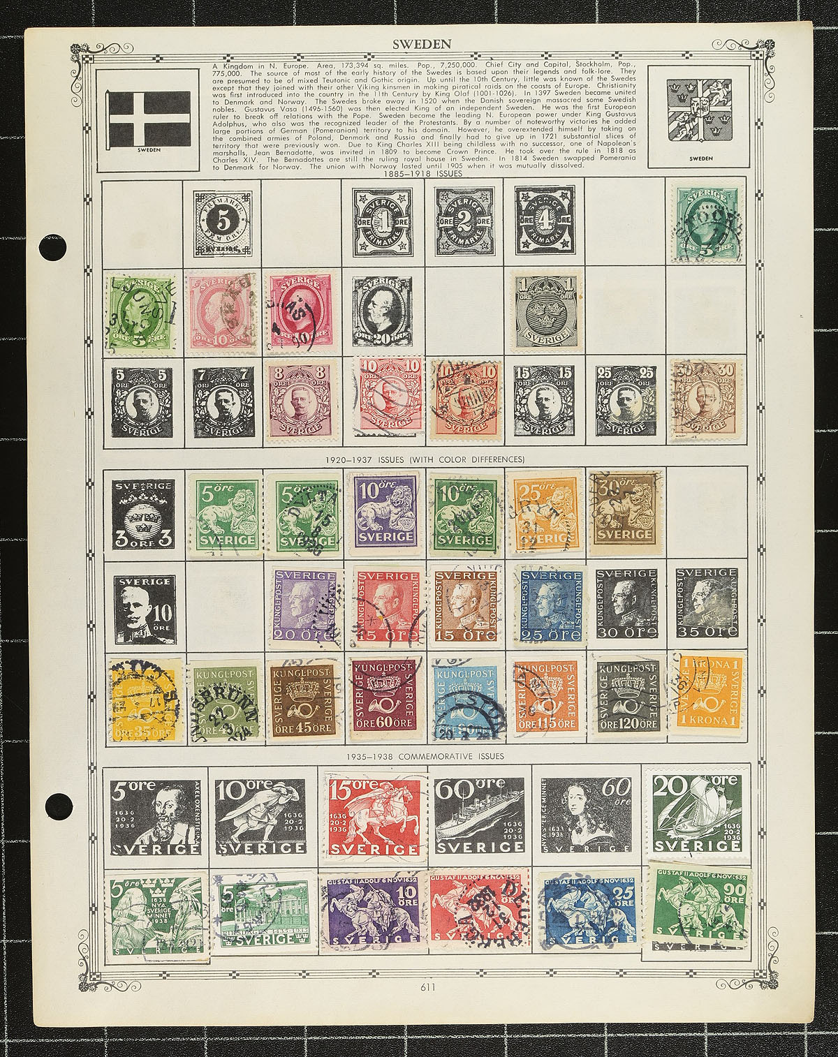 Very large old time collection of primarily used Worldwide stamps, 1880's-1960's, containing several thousands of stamps on several double sided Aristocrat album pages. The collection ranges from A to Z countries with a spot check indicating better representation from United States, Europe (noting France, Austria, Switzerland, and Eastern European regions in particular), Scandinavia, South America, and so much more. The collection also contains scattered mint throughout, along with souvenir sheets, stamps in glassines in pages, back of the book material, and more. Catalogue value tended to be $1 and under, but did spot a few better stamps, along with several postmark types including 'socked on the nose' town cancels. A nice lot for the worldwide collector and should be well worth our low estimate, probably a nickel or less a stamp, overall fine to very fine. Estimate =