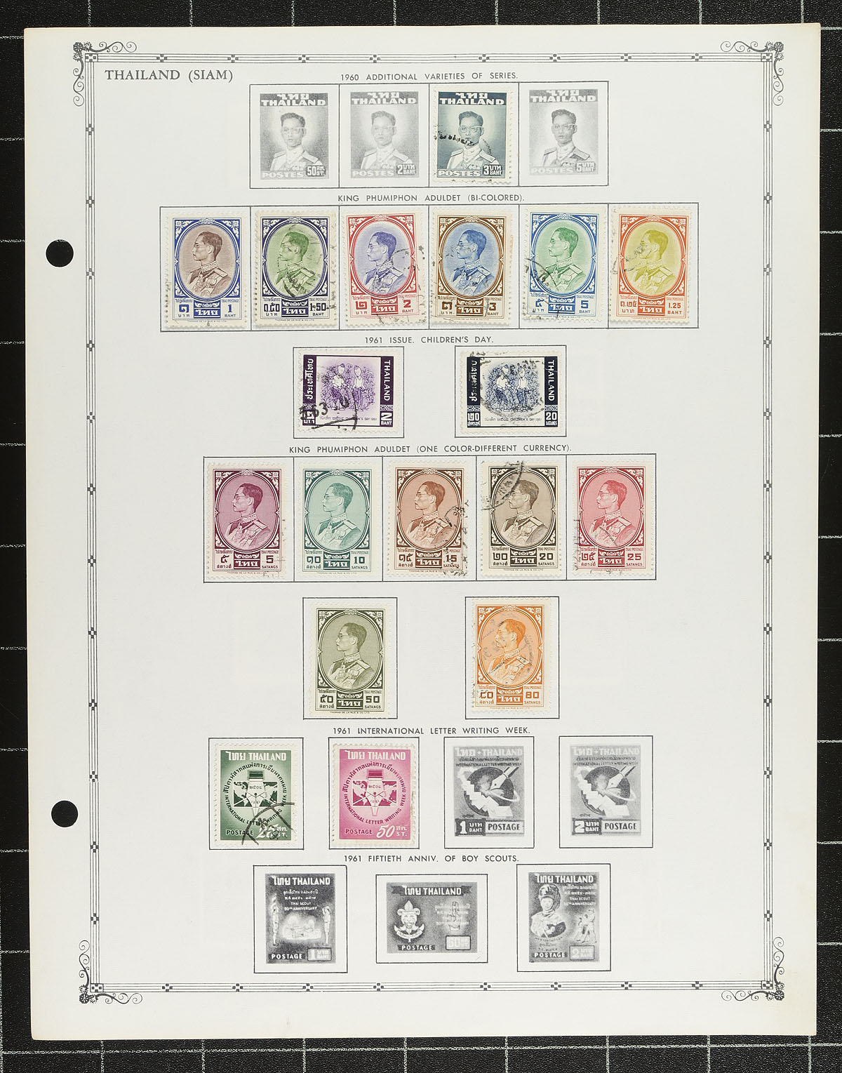 Very large old time collection of primarily used Worldwide stamps, 1880's-1960's, containing several thousands of stamps on several double sided Aristocrat album pages. The collection ranges from A to Z countries with a spot check indicating better representation from United States, Europe (noting France, Austria, Switzerland, and Eastern European regions in particular), Scandinavia, South America, and so much more. The collection also contains scattered mint throughout, along with souvenir sheets, stamps in glassines in pages, back of the book material, and more. Catalogue value tended to be $1 and under, but did spot a few better stamps, along with several postmark types including 'socked on the nose' town cancels. A nice lot for the worldwide collector and should be well worth our low estimate, probably a nickel or less a stamp, overall fine to very fine. Estimate =