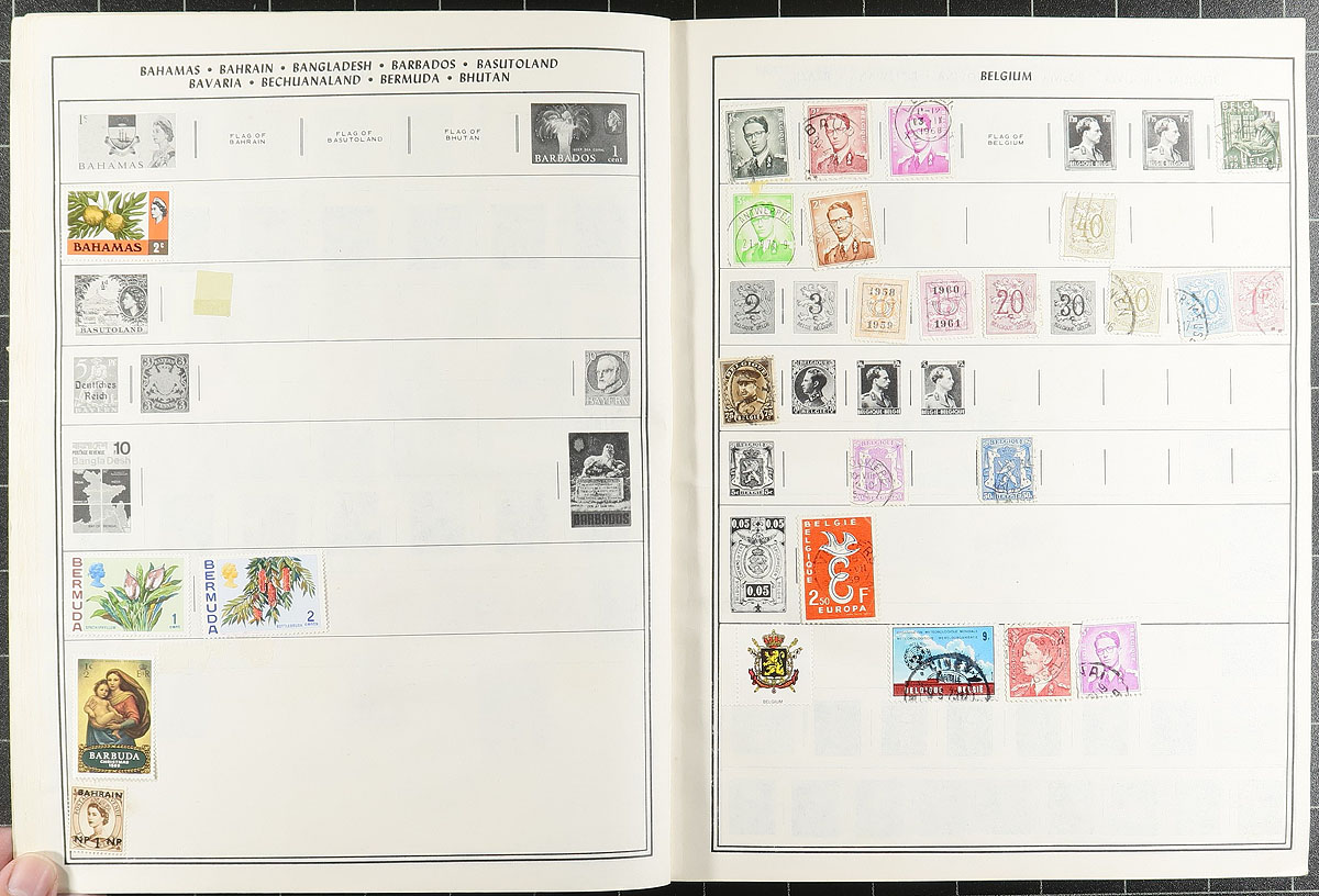 Carton full of thousands of worldwide stamps in a variety of formats, including worldwide albums, stockbooks, album and stock pages, in envelopes, glassines, and more. A cursory check indicated material from the 1890's to the 1970's, but this is a lot for the dedicated collector to make the finds. Still, surprisingly fairly organized for the contents, overall fine to very fine. Estimate =