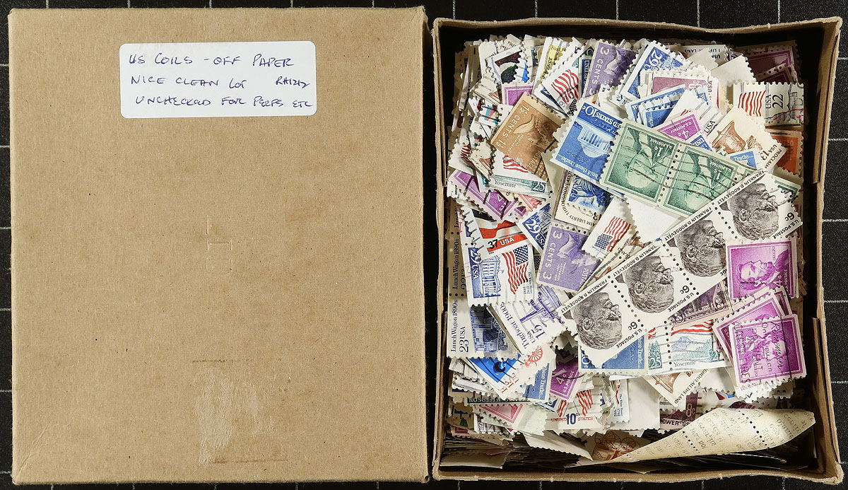 Carton full of thousands of worldwide stamps in a variety of formats, including worldwide albums, stockbooks, album and stock pages, in envelopes, glassines, and more. A cursory check indicated material from the 1890's to the 1970's, but this is a lot for the dedicated collector to make the finds. Still, surprisingly fairly organized for the contents, overall fine to very fine. Estimate =