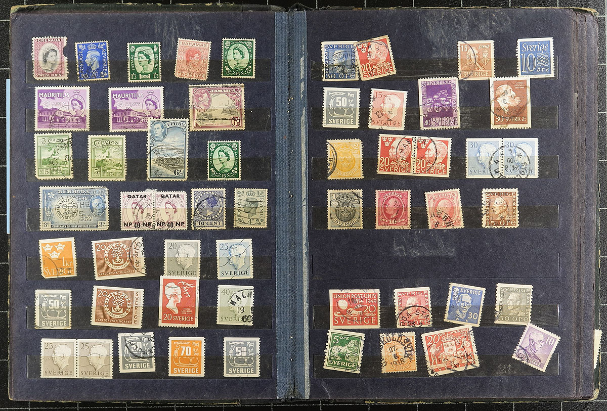 Carton full of thousands of worldwide stamps in a variety of formats, including worldwide albums, stockbooks, album and stock pages, in envelopes, glassines, and more. A cursory check indicated material from the 1890's to the 1970's, but this is a lot for the dedicated collector to make the finds. Still, surprisingly fairly organized for the contents, overall fine to very fine. Estimate =