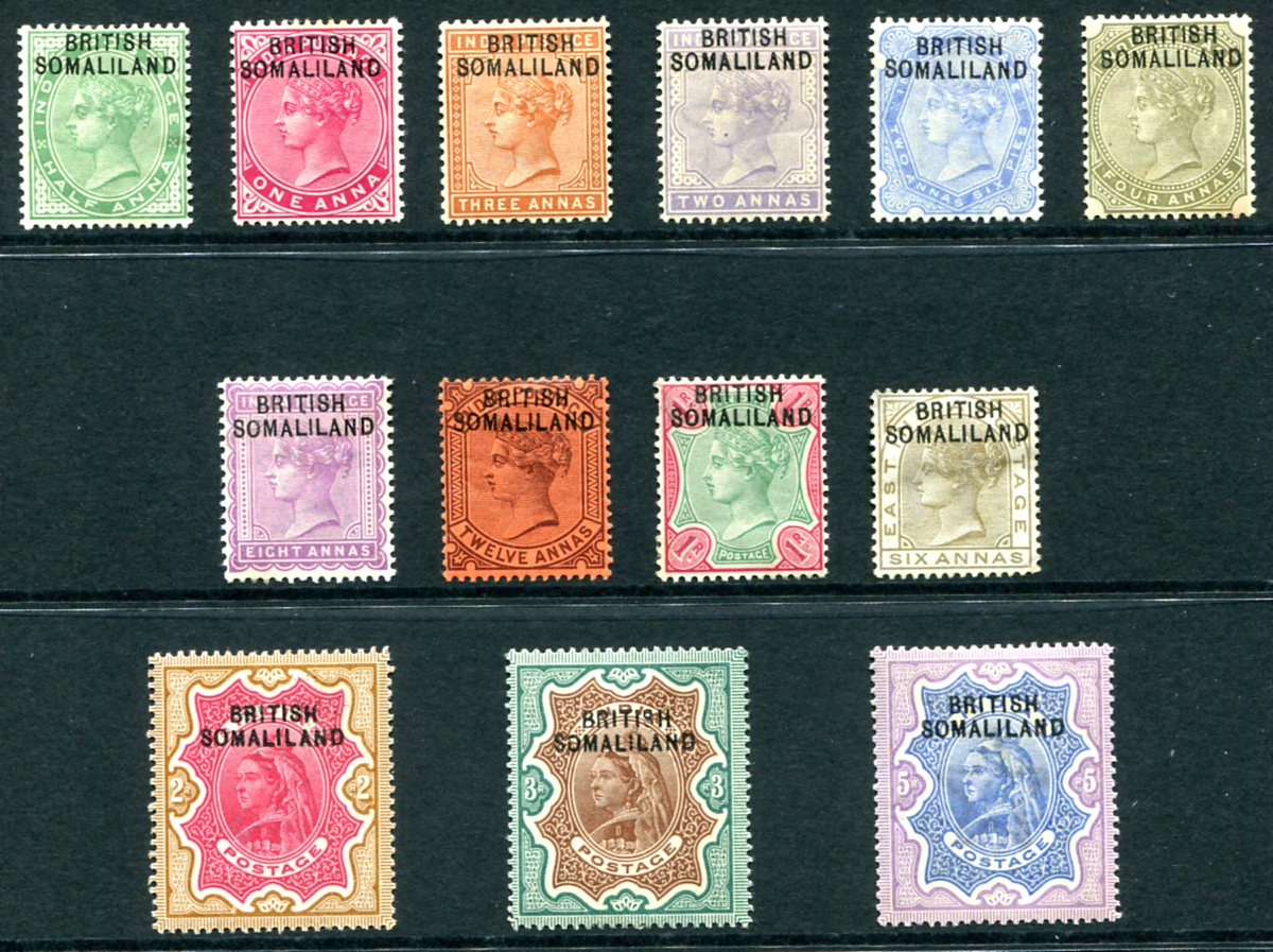 Complete mint Hinged set of the 1903 issued "British Somaliland" overprints on QV stamps of India. A lovely "first set" from this popular East Africa nation. 2025 Scott US$178.75 =