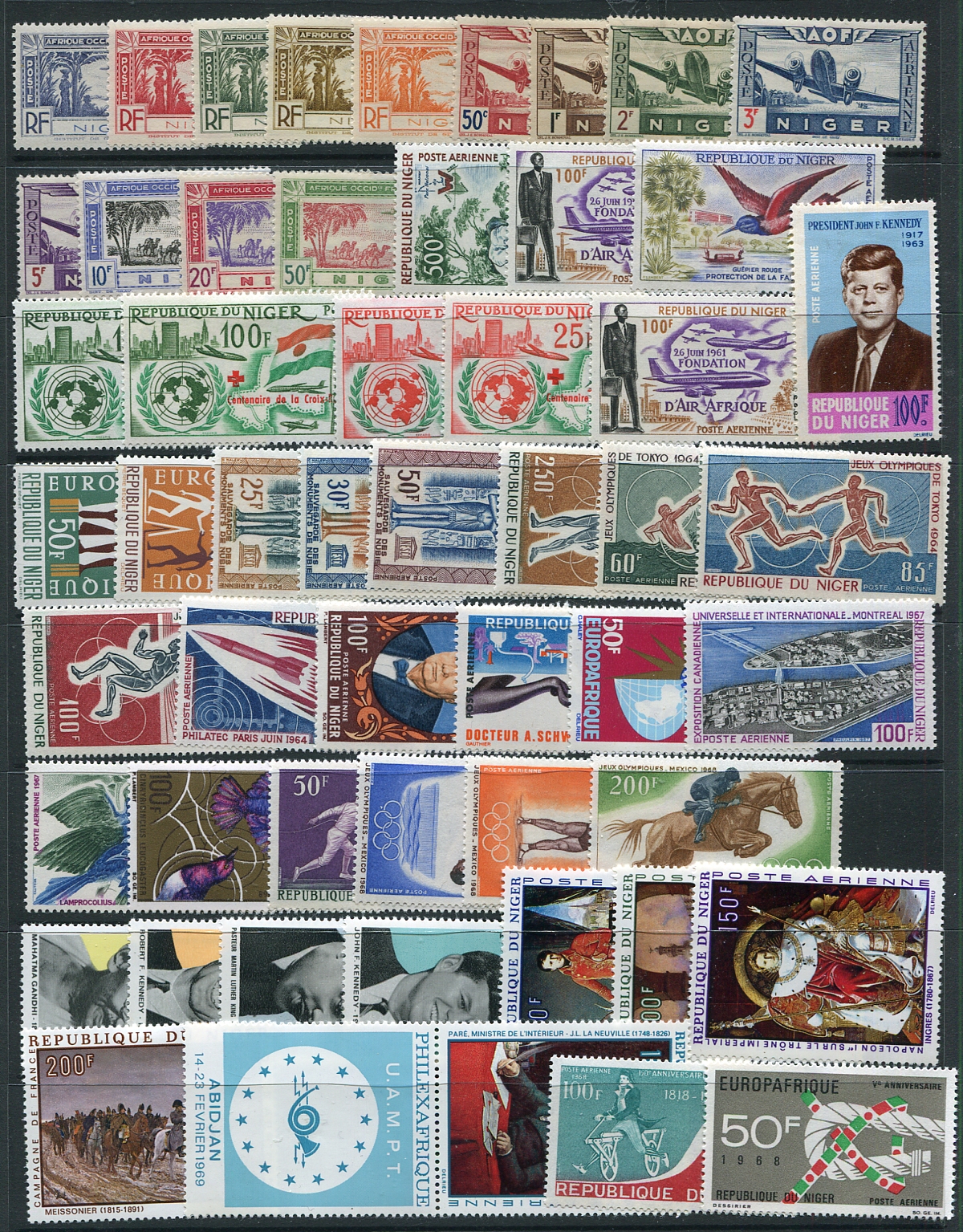 Seldom offered complete mint Hinged (generally Lightly) run of 1921-1965 regular issues (#1-151 complete), then 1940-1972 Airmail stamps (C1-C179 complete, 68 different sets). All arranged on stockpages. A few scuffed stamps from some misplaced tape, but we don't see runs this complete often! Owner's accurate 2022 Scott US$620.10 =