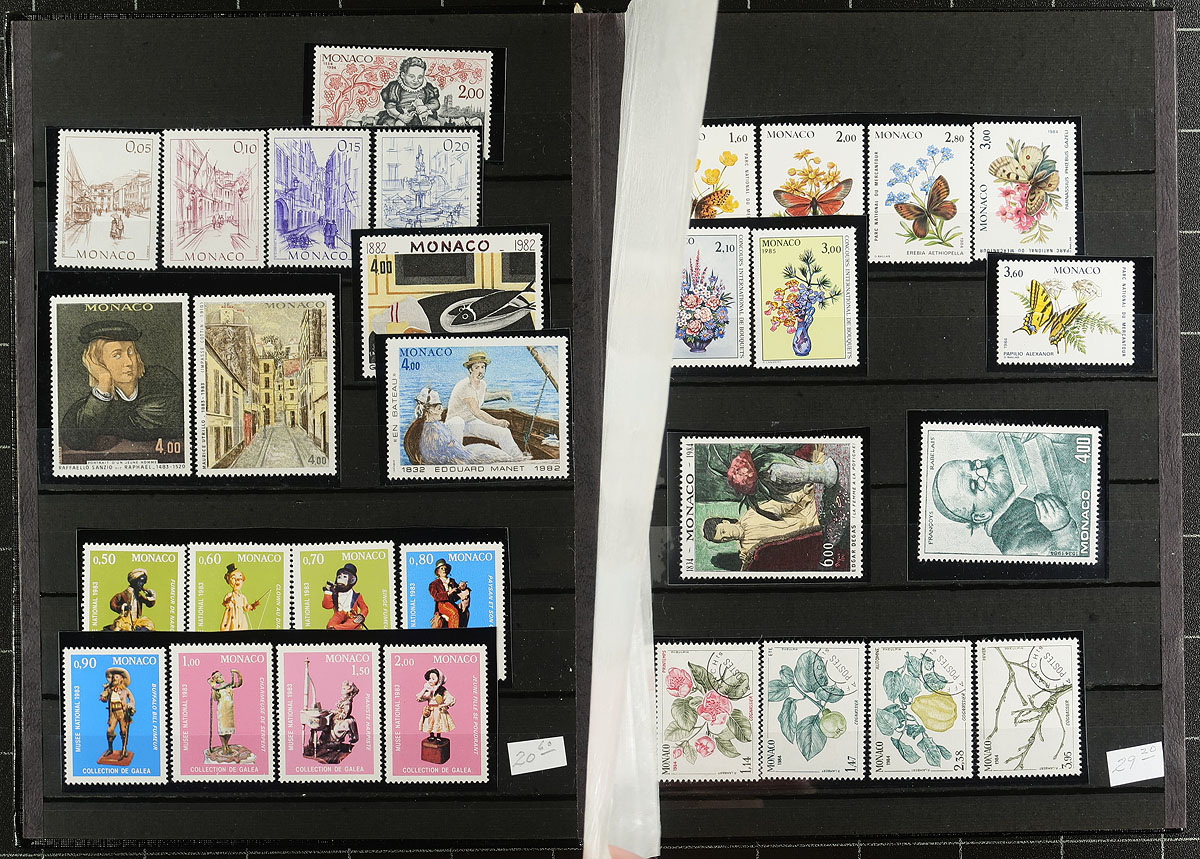 Lovely group of mint Monaco, 1958-1987, containing roughly 250 stamps neatly organized in a small stockbook and a few stock pages. The lot generally ranges from Scott #412/1578, including several sets, a few souvenir sheets, and semi-postals, noting some sets and souvenir sheets in the $8 to $20 range, with some material identified with current catalogue pricing. A spot check indicates a mixture of hinged and never hinged material. Clean and well organized for collectors and dealers alike, with all pages photographed online. 2026 Scott US$559.00 =