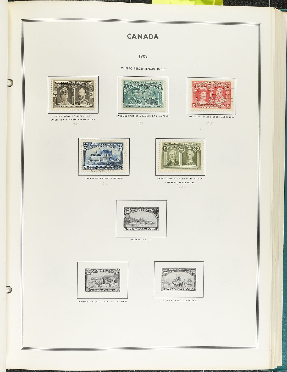 Starter collection of used Canada, 1870's-1970's, containing a few hundred stamps neatly organized in a Harris album. The collection ranges from Scott #18/561, including a few coils, back of the book issues, and a small group of Newfoundland stamps. The lot essentially begins with a few Small Queens, and partial sets of Leafs, Numerals, Edwards, Quebecs (up to the 7c), Scrolls (noting $1 Parliament), along with a few complete sets of Admirals and 1935 Pictorials. The lot also includes a few mint stamps scattered within. A nice starter lot with a few better values, overall fine to very fine. Estimate =