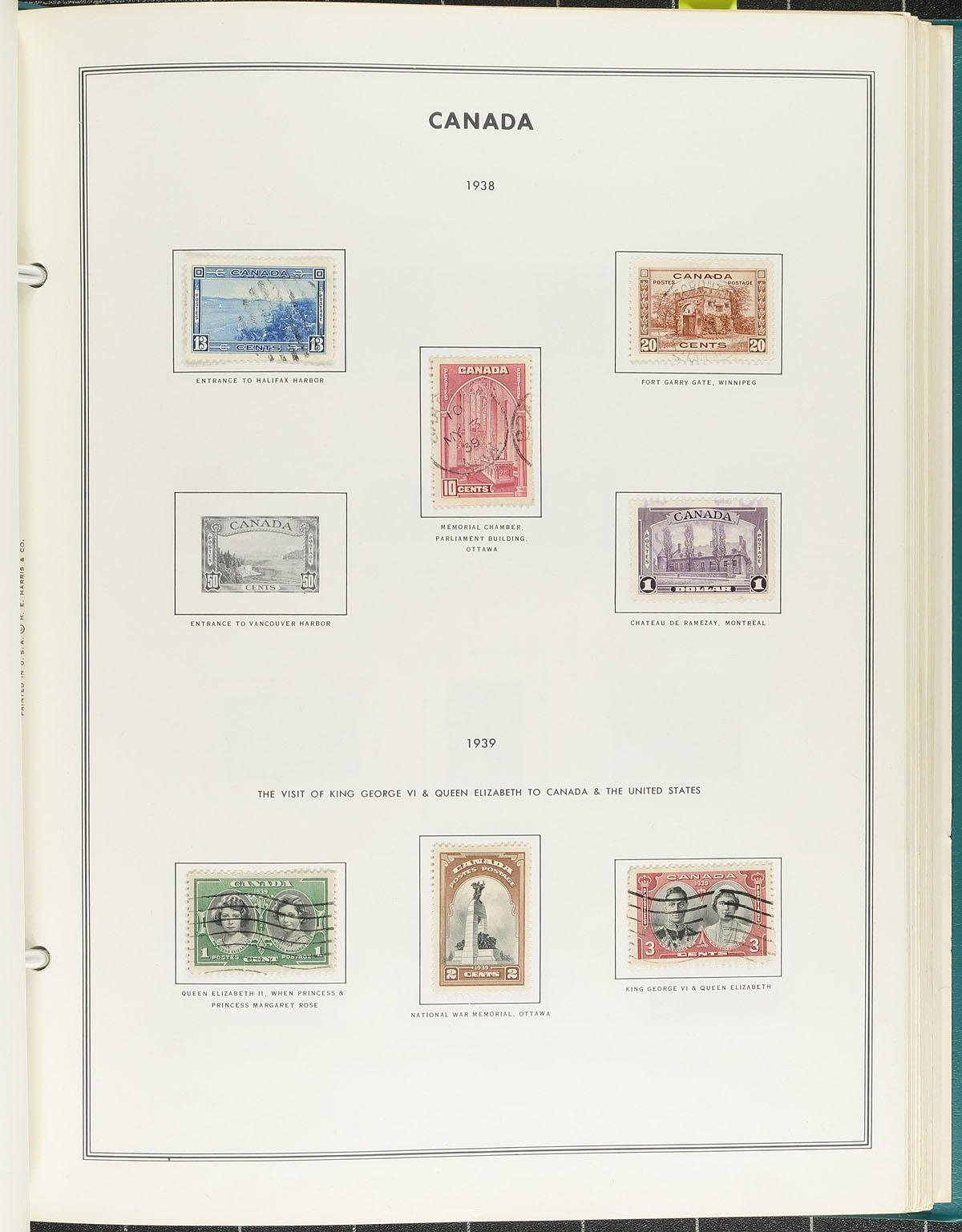 Starter collection of used Canada, 1870's-1970's, containing a few hundred stamps neatly organized in a Harris album. The collection ranges from Scott #18/561, including a few coils, back of the book issues, and a small group of Newfoundland stamps. The lot essentially begins with a few Small Queens, and partial sets of Leafs, Numerals, Edwards, Quebecs (up to the 7c), Scrolls (noting $1 Parliament), along with a few complete sets of Admirals and 1935 Pictorials. The lot also includes a few mint stamps scattered within. A nice starter lot with a few better values, overall fine to very fine. Estimate =