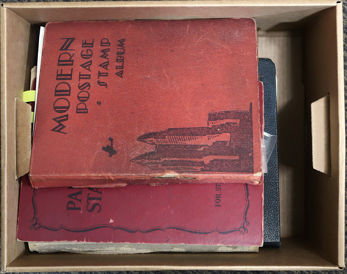 Lot of thousands of primarily used worldwide stamps in 6 volumes. The lot consists of three Lighthouse stockbooks, 2 worldwide albums, and a 1953 Coronation album, noting better representation from the United States (filling one Lighthouse stockbook), European countries (Austria and Germany inparticular), British Commonwealth area, and more. Material generally appears to be from the 1900's onwards, along with a few mint stamps scattered throughout. A nice lot with possible finds for the worldwide collector. Estimate =