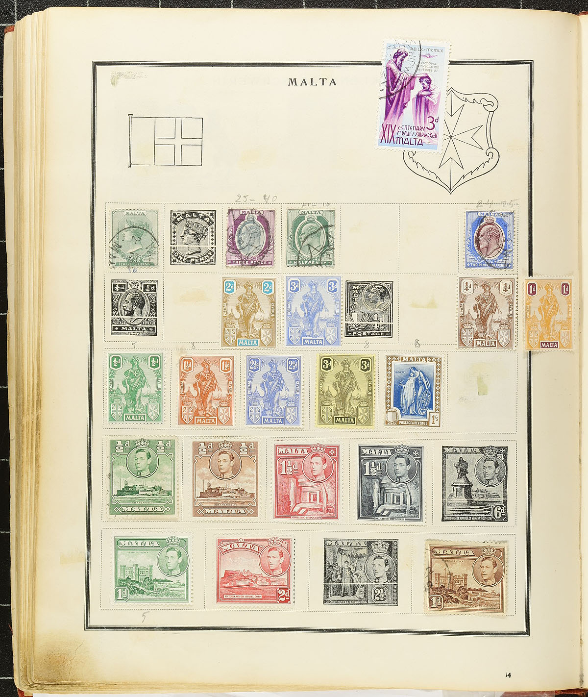 Lot of thousands of primarily used worldwide stamps in 6 volumes. The lot consists of three Lighthouse stockbooks, 2 worldwide albums, and a 1953 Coronation album, noting better representation from the United States (filling one Lighthouse stockbook), European countries (Austria and Germany inparticular), British Commonwealth area, and more. Material generally appears to be from the 1900's onwards, along with a few mint stamps scattered throughout. A nice lot with possible finds for the worldwide collector. Estimate =