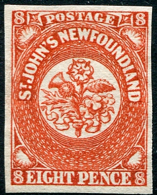 Sound and VF unused (no gum) 4-margin example of the 8d scarlet vermilion 1857 pence issue imperf. 2026 Scott US$400.00 =