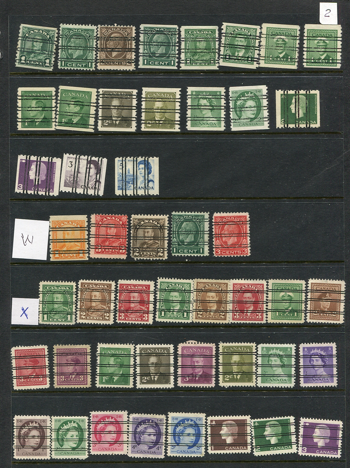 A second collector's selection, this time Bar Styles "R" thru "X", with 122 different stamps arranged on 3 Hagner brand stockpages. Ordered by style, 19 are valued in the $20.00-$40.00 range ($460.00 total on these 19). Most of the Elizabethan defitives are mint Never Hinged (no premium) and includes a nice selection of Victorian "Style T". A great "foot in the door" assembly. Owner's Standard Precancel Catalogue =
