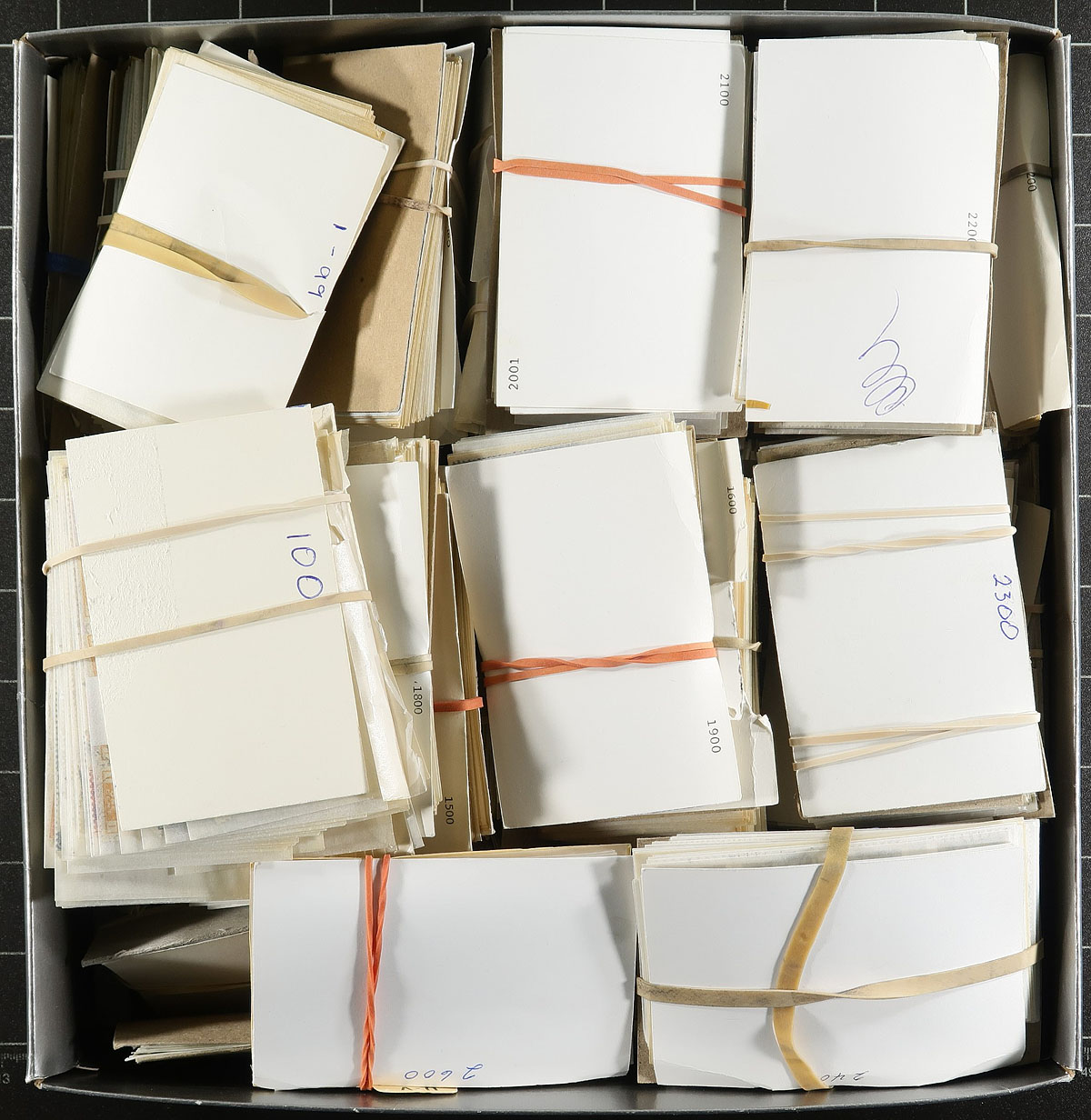 Stock of used Canada, 1897-2014, containing thousands of stamps neatly organized into hundreds of glassines, with each glassine identified by Scott number. The lot ranges from Scott #51/2700, with at least one stamp to many stamps per glassine (a spot check noted 50c Bluenose (x2), and $1 Parliament), with a mixture of definitive and commemorative issues. Completely unchecked for varieties, postmarks, etc. A nice project for the consummate collector. Estimate =