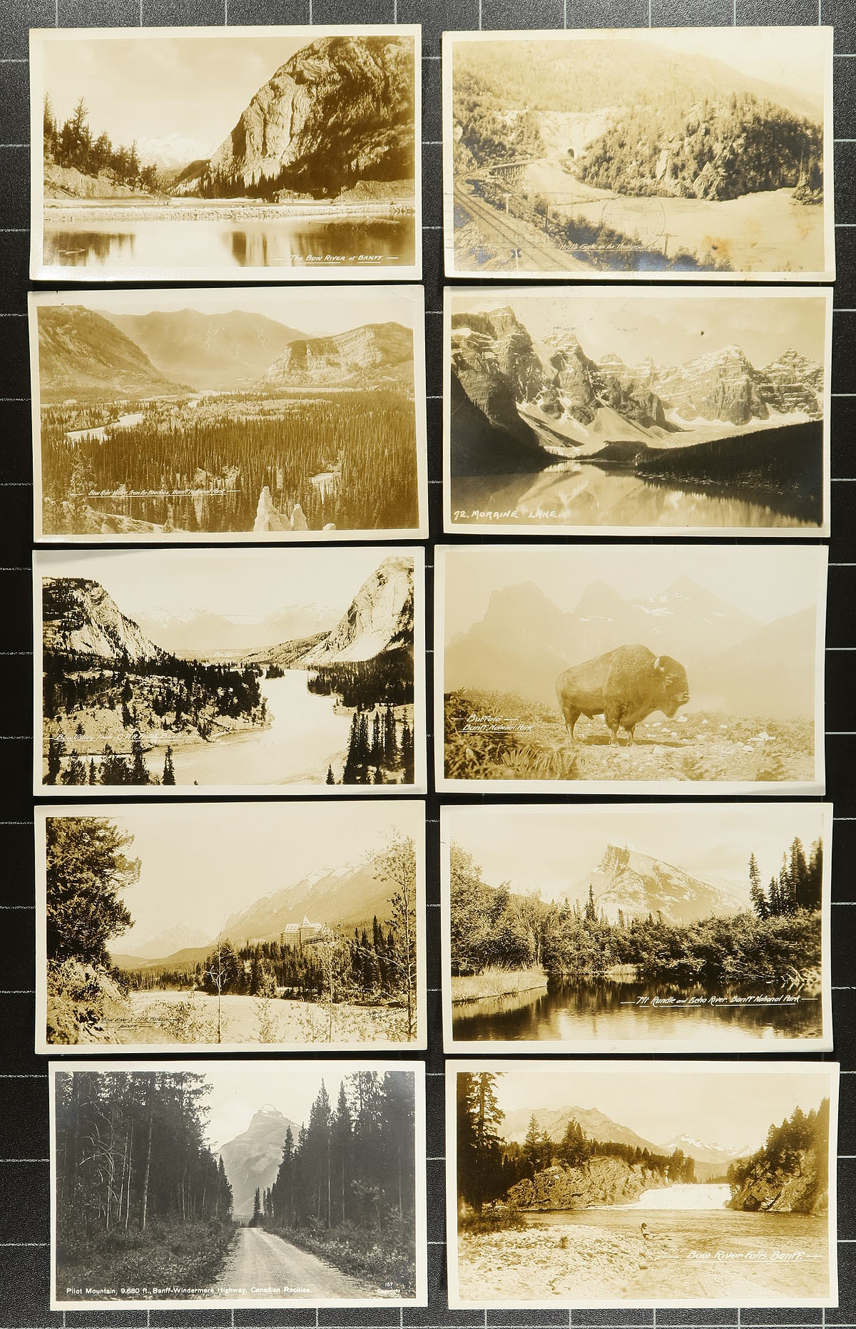 Postcards. The "Canadian Rockies" holding of 80x RPPC (Real Photo Postcards) featuring scenes of the Canadian Rockies and areas surrounding the BC/Alberta border. Noted several better postcards from Banff, Wildlife, Autos, Roads etc. Notable publishers / photographers including Gowen Sutton and Byron Harmon. Estimate =