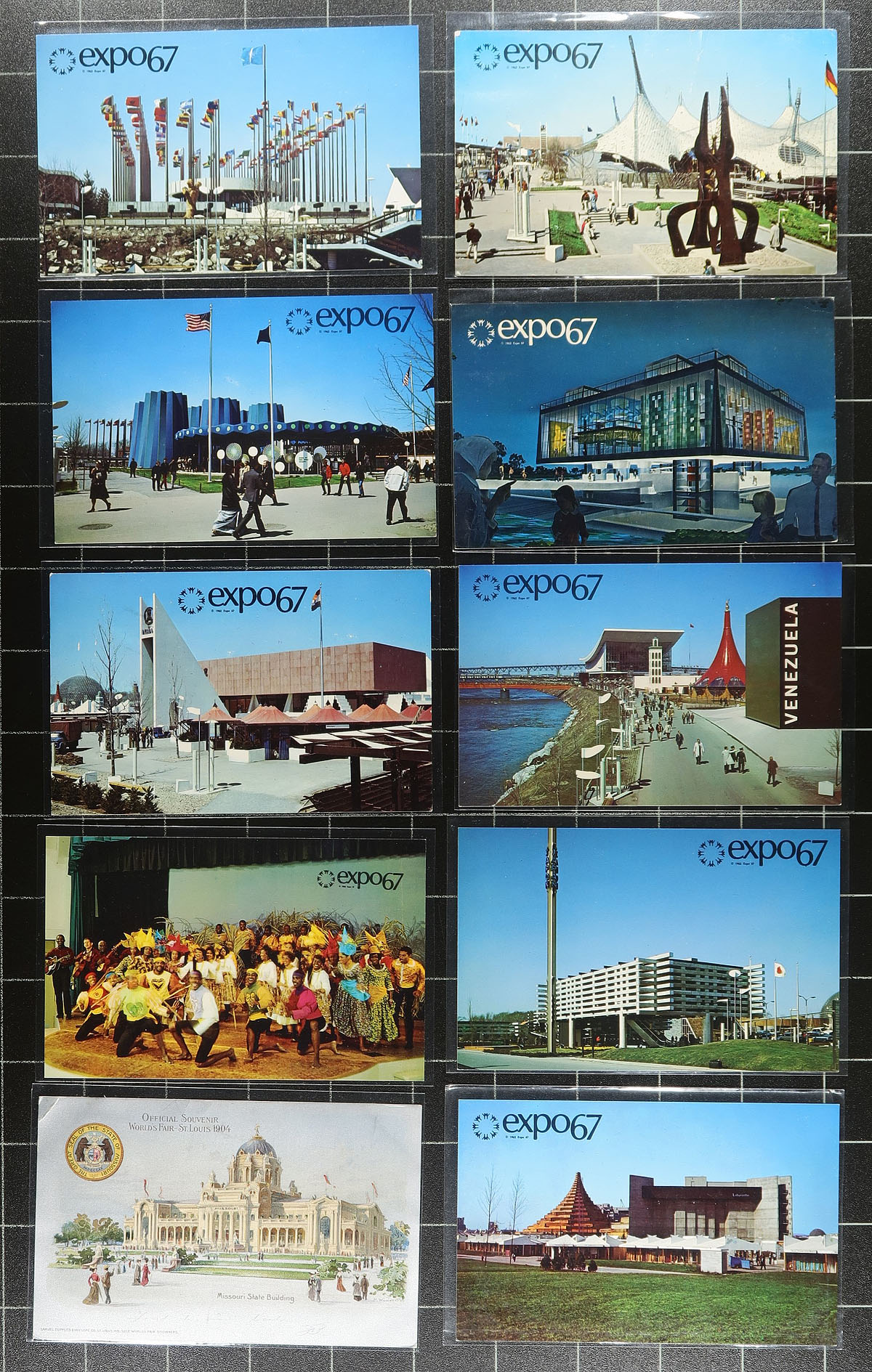 EXPO 67' Postcard Holding. A "flashback" in time group of 75 picture postcards, issued for EXPO 67' in Montreal. Looks to be about 20 which are used, the rest unused. The original collector was attempting to see how many different views could be acquired, and these are seemingly all different. We don't see these come around in large batches often. Estimate =