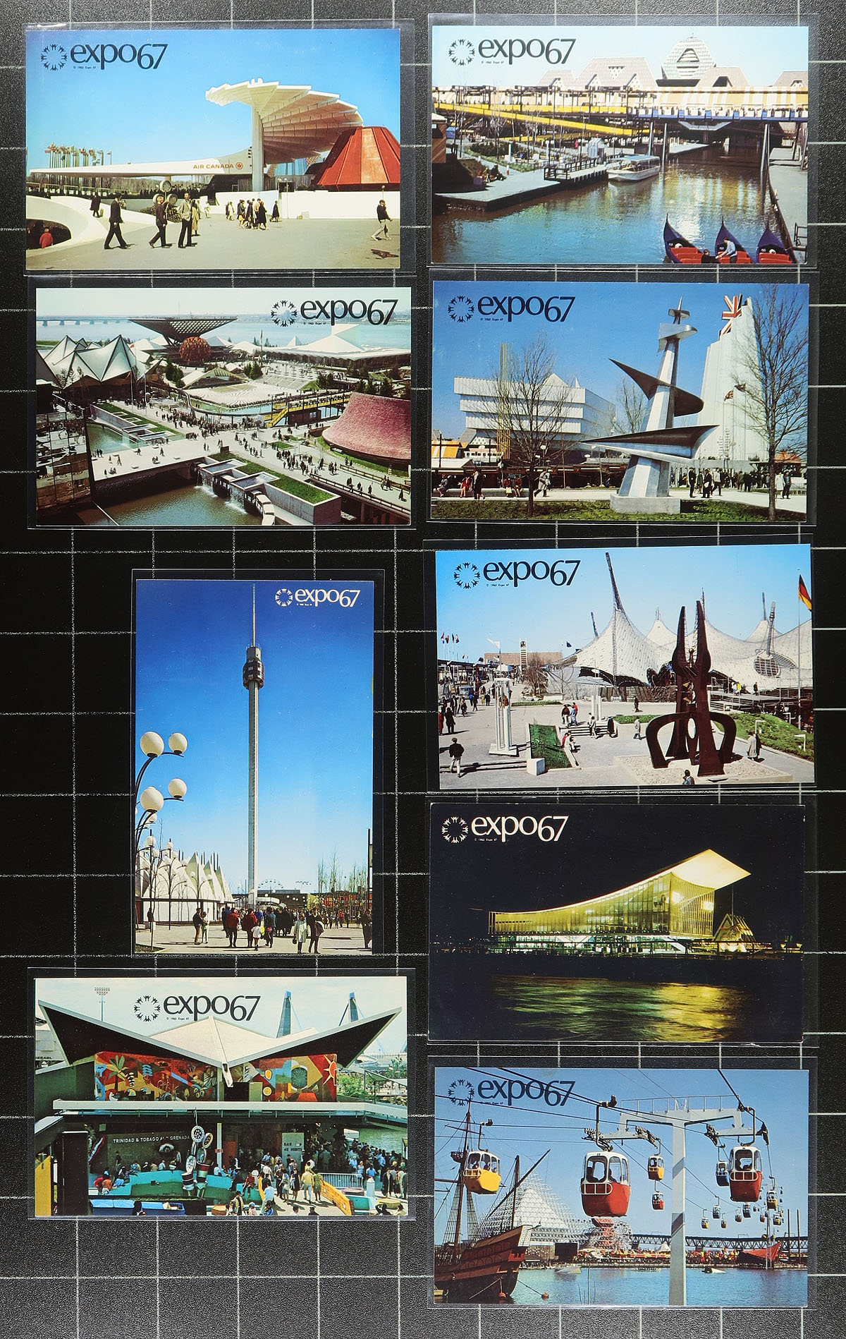 EXPO 67' Postcard Holding. A "flashback" in time group of 75 picture postcards, issued for EXPO 67' in Montreal. Looks to be about 20 which are used, the rest unused. The original collector was attempting to see how many different views could be acquired, and these are seemingly all different. We don't see these come around in large batches often. Estimate =