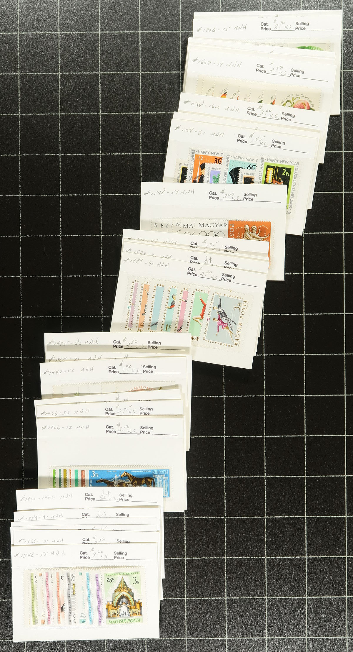 Well organized group of never hinged Hungary singles and sets, 1950's-1990's, all well identified in 102 cards with older catalogue values. We note roughly 175 different sets ranging from Scott #1043/3514, along with semi-postals from #B207/B358a. A nice clean lot for collectors and dealers alike, noting several topical and thematic possibilities. Very fine. 2026 Scott US$459.00 =