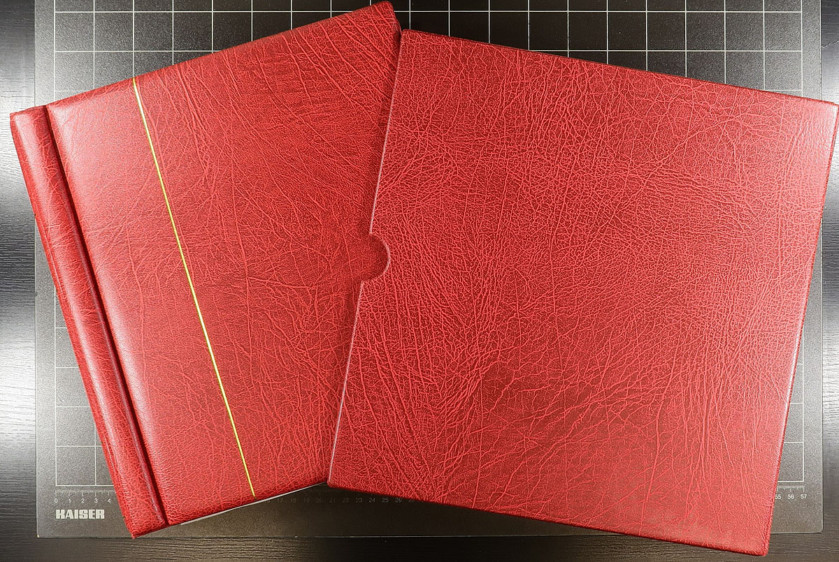 Lovely group of 6 Lighthouse 2-post albums with slipcases. Three each of green and red, with 4 of the albums labeled for Australia, but suitable for all worldwide collectors. The albums to appear to be brand new or in like new condition. Retail value for each album is roughly $150.00 each, making this an ideal lot for all collectors. Estimate =