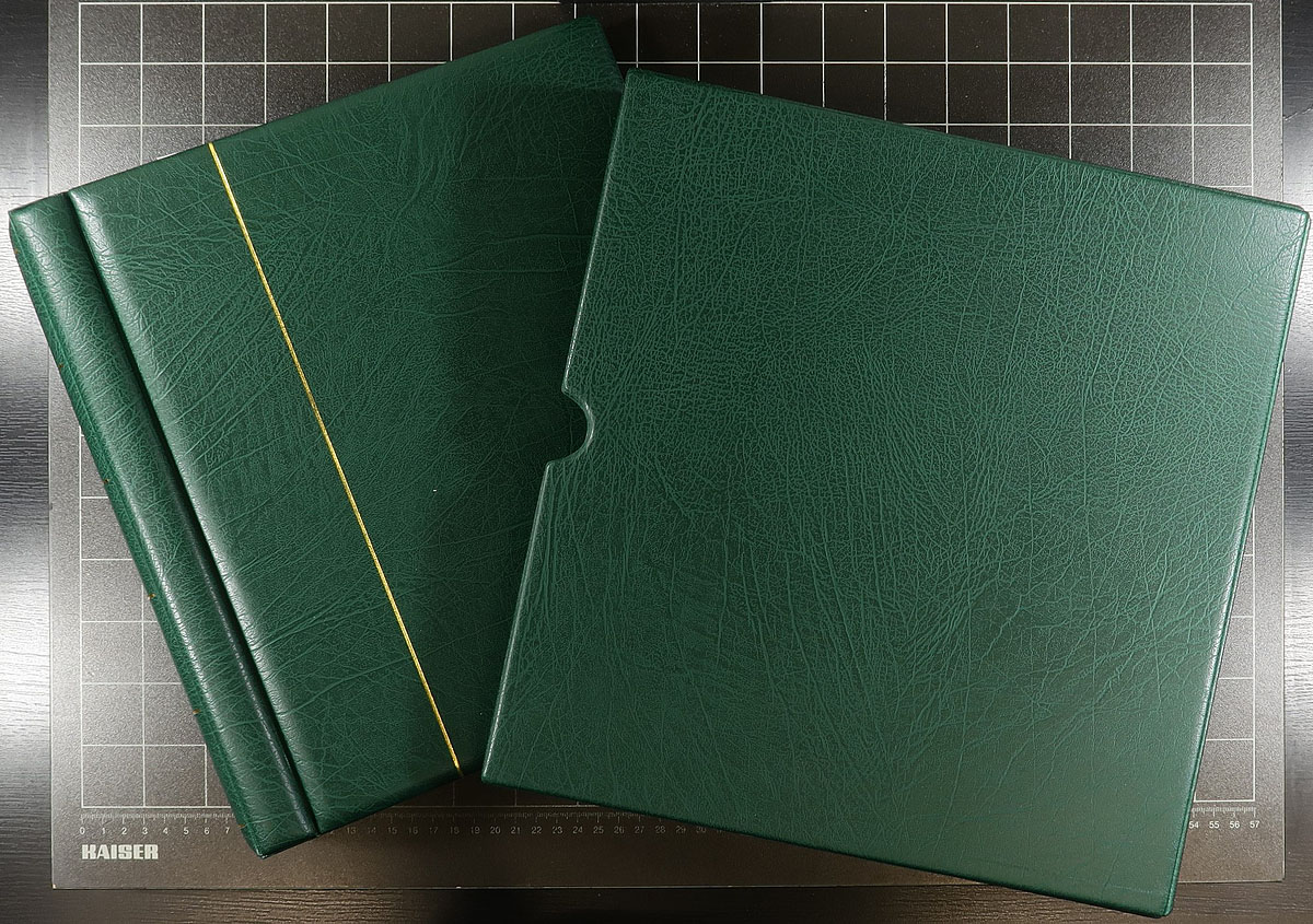 Lovely group of 6 Lighthouse 2-post albums with slipcases. Three each of green and red, with 4 of the albums labeled for Australia, but suitable for all worldwide collectors. The albums to appear to be brand new or in like new condition. Retail value for each album is roughly $150.00 each, making this an ideal lot for all collectors. Estimate =