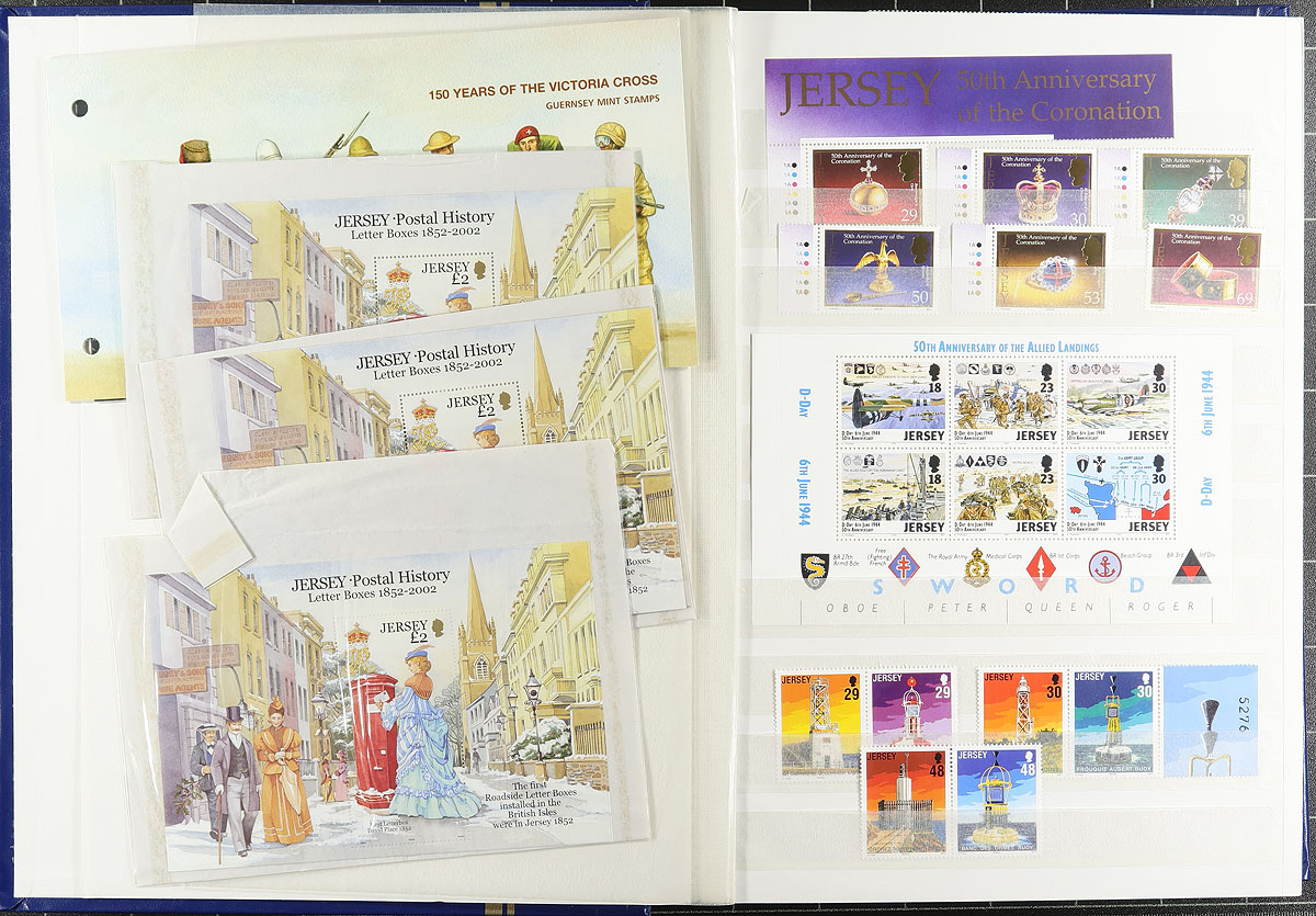 Clean never hinged collection of Jersey, 1985-2007, containing many hundreds of stamps in a stockbook. This neatly organized collection ranges from Scott #366/1293, containing primarily sets, and several souvenir sheets, with the vast majority of material from 1999 onwards. We note several sets cataloguing in the $5 to $10 range. A nice clean lot for all collectors, very fine. 2026 Scott US$567.00 =