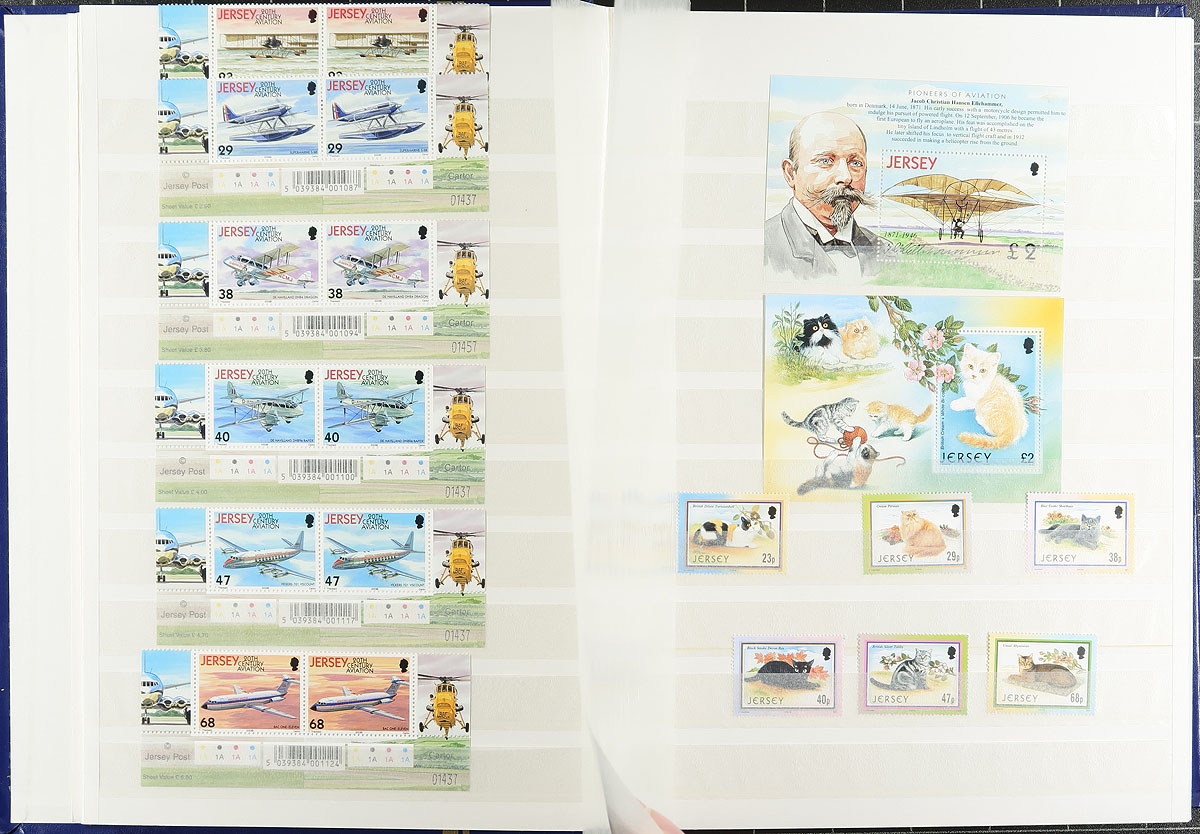 Clean never hinged collection of Jersey, 1985-2007, containing many hundreds of stamps in a stockbook. This neatly organized collection ranges from Scott #366/1293, containing primarily sets, and several souvenir sheets, with the vast majority of material from 1999 onwards. We note several sets cataloguing in the $5 to $10 range. A nice clean lot for all collectors, very fine. 2026 Scott US$567.00 =