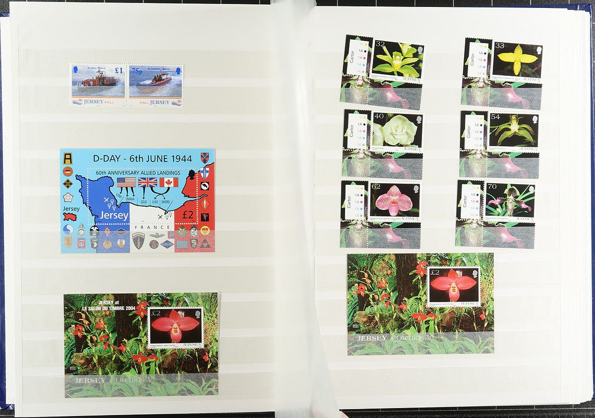 Clean never hinged collection of Jersey, 1985-2007, containing many hundreds of stamps in a stockbook. This neatly organized collection ranges from Scott #366/1293, containing primarily sets, and several souvenir sheets, with the vast majority of material from 1999 onwards. We note several sets cataloguing in the $5 to $10 range. A nice clean lot for all collectors, very fine. 2026 Scott US$567.00 =