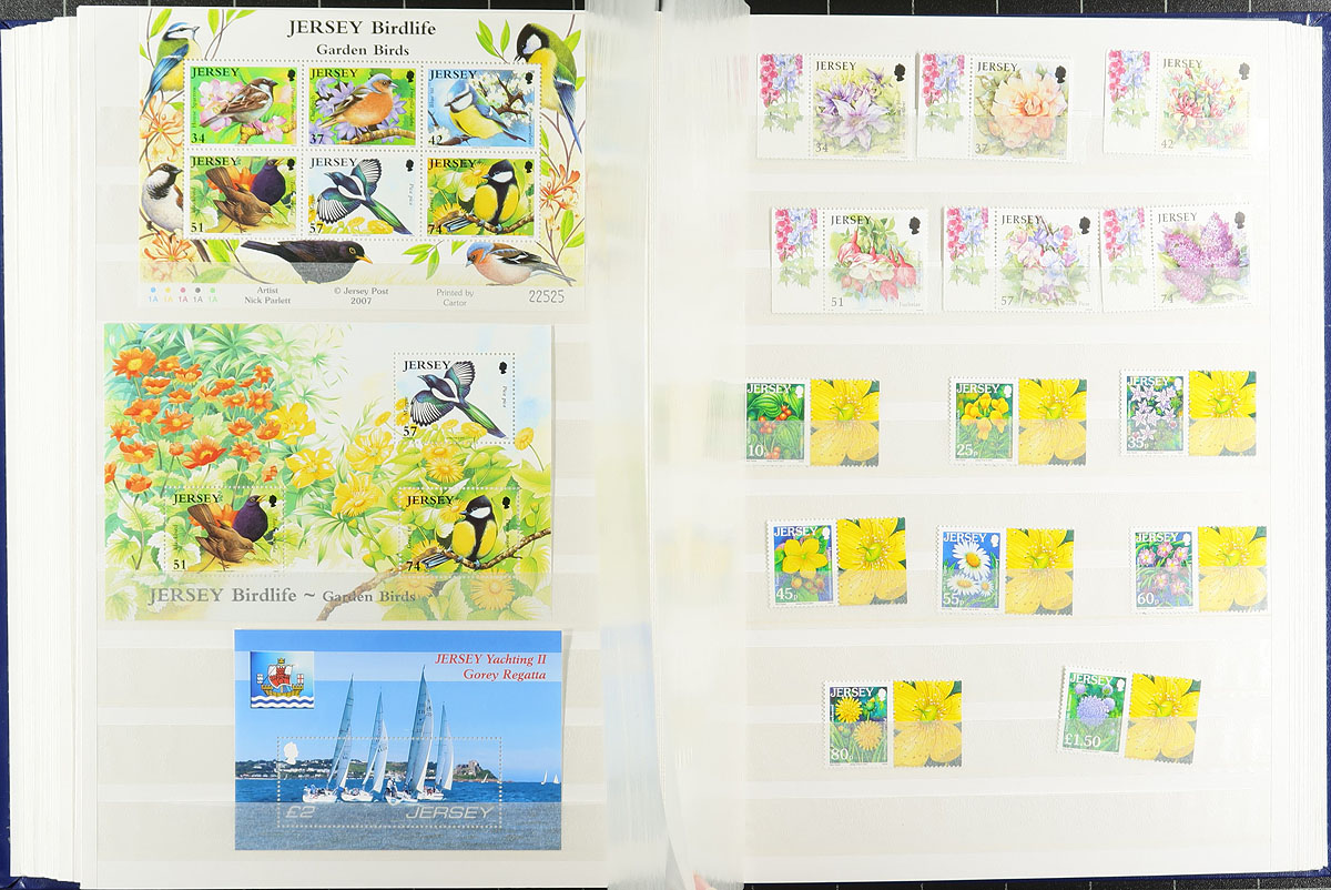 Clean never hinged collection of Jersey, 1985-2007, containing many hundreds of stamps in a stockbook. This neatly organized collection ranges from Scott #366/1293, containing primarily sets, and several souvenir sheets, with the vast majority of material from 1999 onwards. We note several sets cataloguing in the $5 to $10 range. A nice clean lot for all collectors, very fine. 2026 Scott US$567.00 =