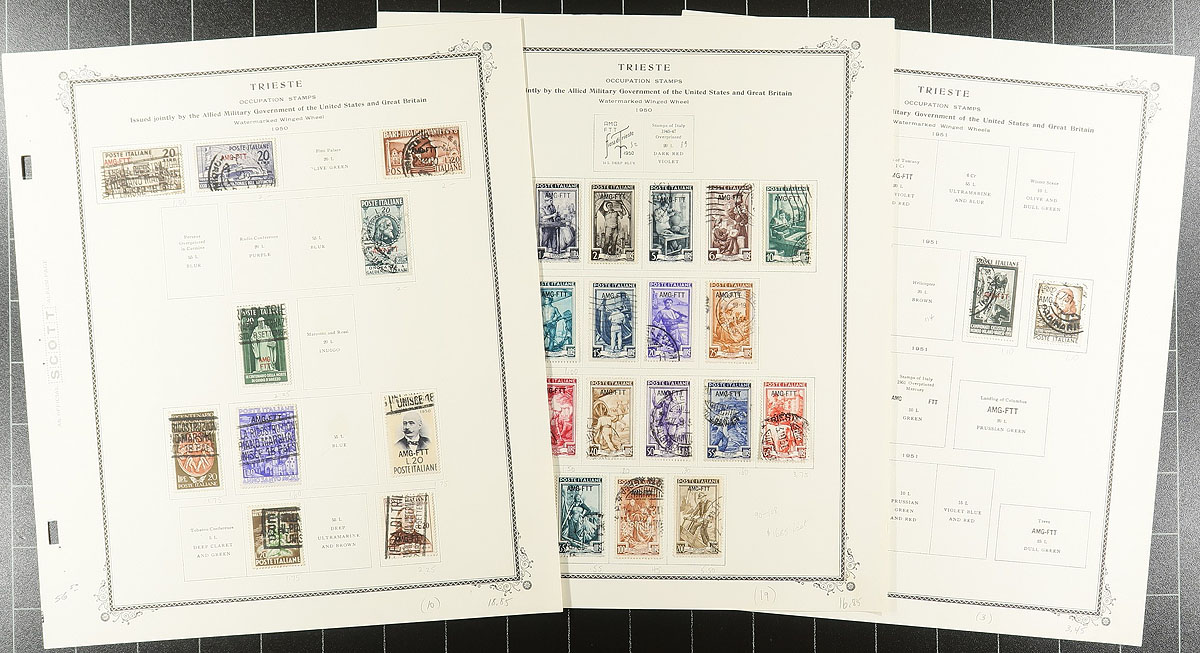 Nice collection / accumulation of mint and used Trieste, 1947-1954, containing roughly 500 stamps in album or stock pages. The bulk of the lot is with the collection of roughly 315 stamps, well organized in several album pages, ranging from Scott #1/208, including airmails, special delivery, postage dues, parcel posts and more. A spot check indicated some singles and sets cataloguing $20 and up including #s 1-17 (used, c.v. $101 total) and more, with mild duplication possible. Owner's Scott 2026 catalogue value for the collection totals $1,676. The lot also includes a few stock pages of Trieste material. A nice lot for the Italy or worldwide collector, overall fine to very fine. 2026 Scott US$1,676.00 =