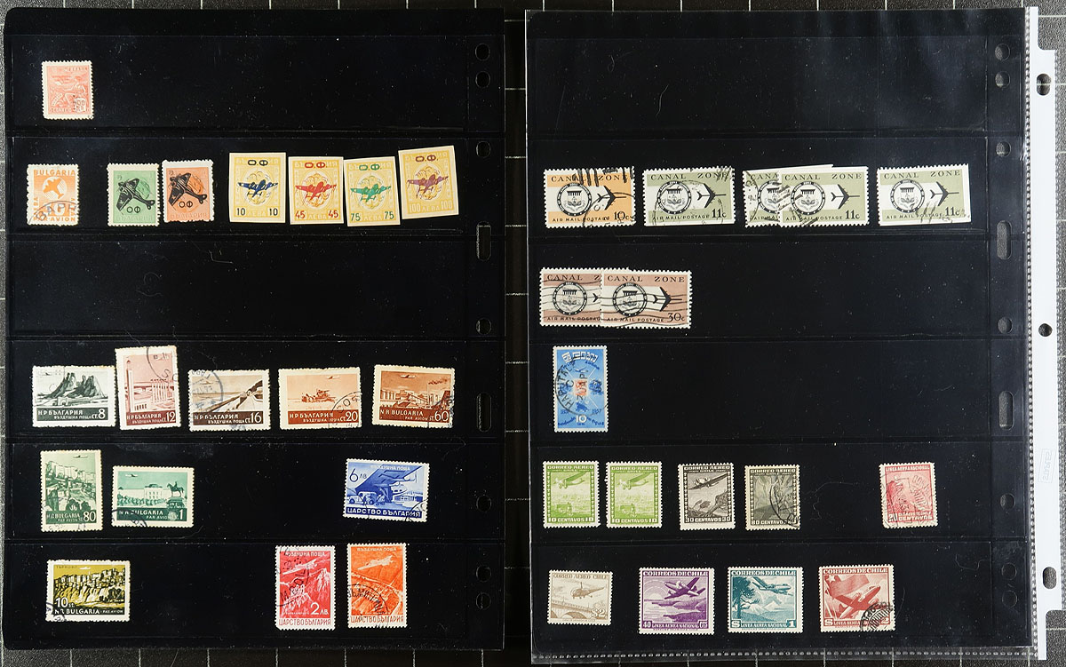 Nice collection of primarily used worldwide airmail issues, 1930's-1970's, containing many hundreds of stamps in roughly 30 stock pages. We note better representation from British Commonwealth and South America countries, along with some European material, noting a few better items including #s Belgium C5 (used, $30), C12a (nh, c.v. $82.50), Australia CO1 (mh, $35), along with a few other stamps cataloguing $5 to $10 and up each. A nice starter group for this very popular area of philately. 2026 Scott US$396.50 =
