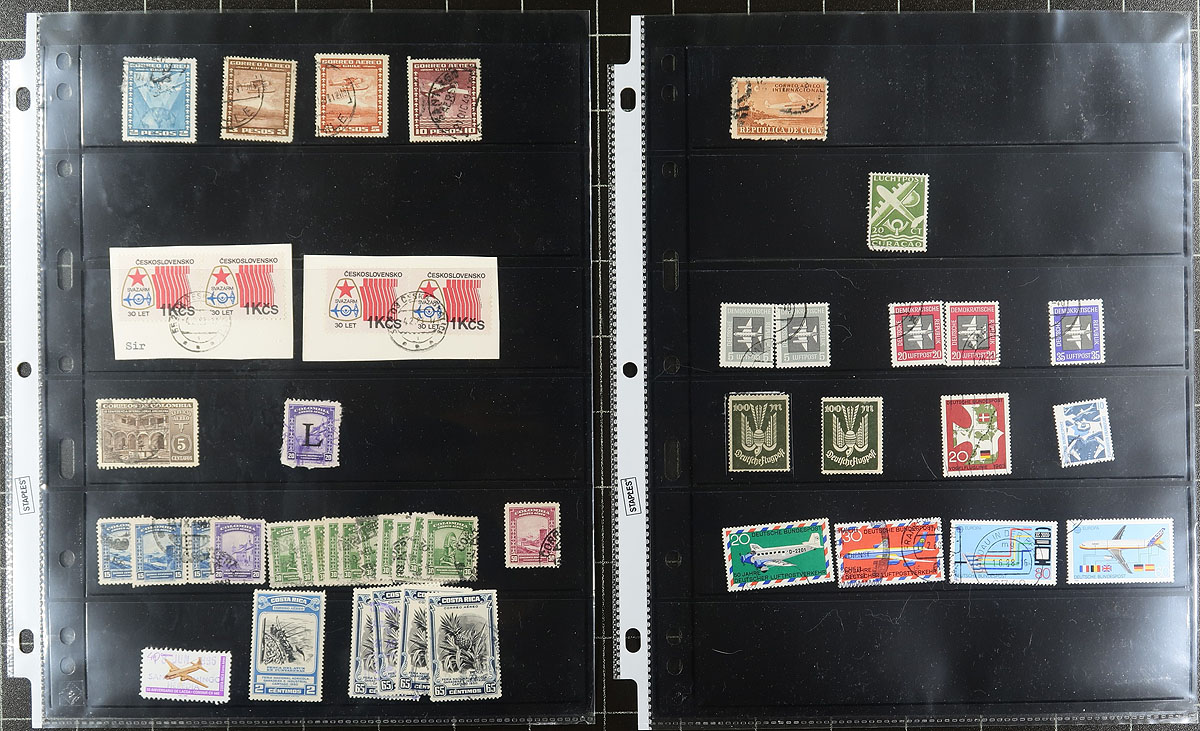 Nice collection of primarily used worldwide airmail issues, 1930's-1970's, containing many hundreds of stamps in roughly 30 stock pages. We note better representation from British Commonwealth and South America countries, along with some European material, noting a few better items including #s Belgium C5 (used, $30), C12a (nh, c.v. $82.50), Australia CO1 (mh, $35), along with a few other stamps cataloguing $5 to $10 and up each. A nice starter group for this very popular area of philately. 2026 Scott US$396.50 =