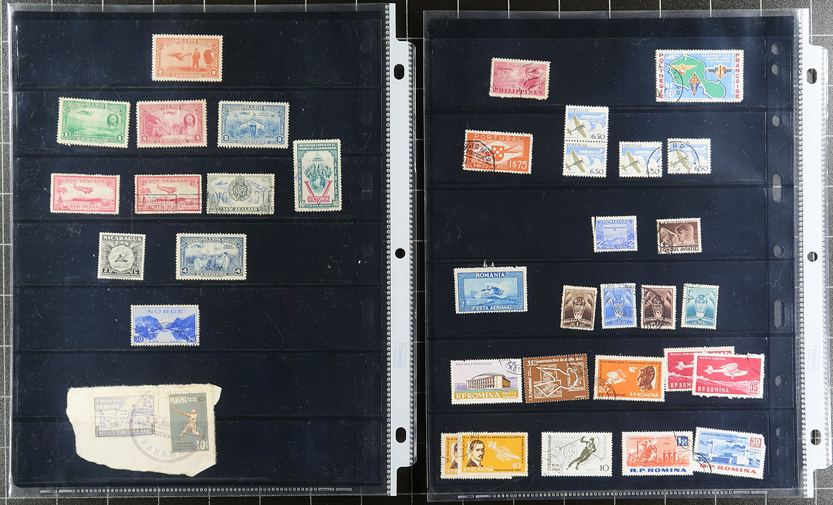 Nice collection of primarily used worldwide airmail issues, 1930's-1970's, containing many hundreds of stamps in roughly 30 stock pages. We note better representation from British Commonwealth and South America countries, along with some European material, noting a few better items including #s Belgium C5 (used, $30), C12a (nh, c.v. $82.50), Australia CO1 (mh, $35), along with a few other stamps cataloguing $5 to $10 and up each. A nice starter group for this very popular area of philately. 2026 Scott US$396.50 =