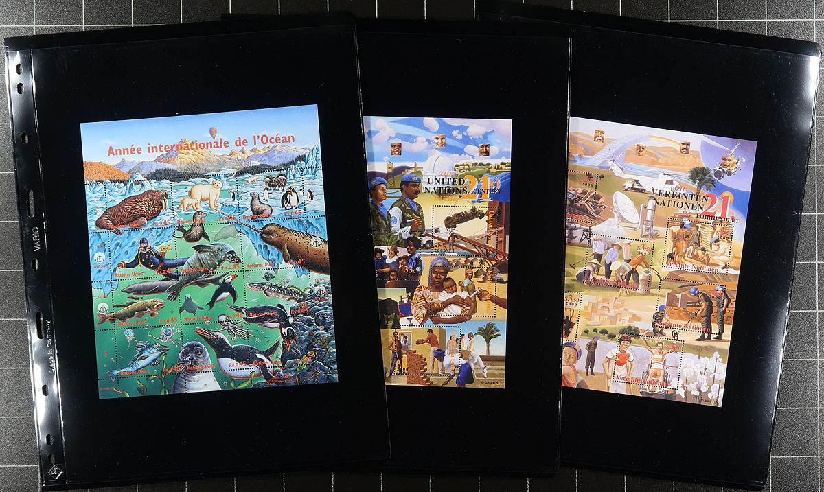 Nice collection / accumulation of never hinged material, 1969-2005, containing many hundreds of stamps in over 50 stock pages. We note better representation from the Geneva office, but includes material from New York and Vienna, noting several sets, blocks, souvenir sheets and sheetlets, including Space, Art, Anniversary, Endangered Species, and many other issues. Owner's Scott 2021 catalogue value for the lot totals US$1,413.00 ($1907.55 CDN), and makes a nice lot for topical and thematic collectors noting many, many, suitable subjects. Mild duplication throughout, clean and very fine. Estimate =
