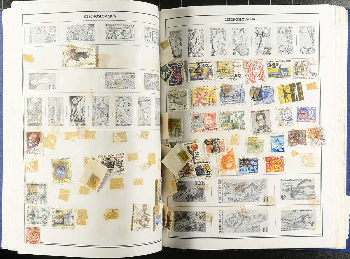 Carton full of thousands of worldwide stamps in a variety of formats. We note several album or stock pages in binders (one containing used Great Britain, the other New Zealand), albums, glassines, 102 cards, and loose stamps. A spot check indicated roughly 50 used Canada souvenir sheets (including a few modern ones), some mint British Commonwealth, and much more, including some items cataloguing $5 to $10 each. A nice winter project. Estimate =