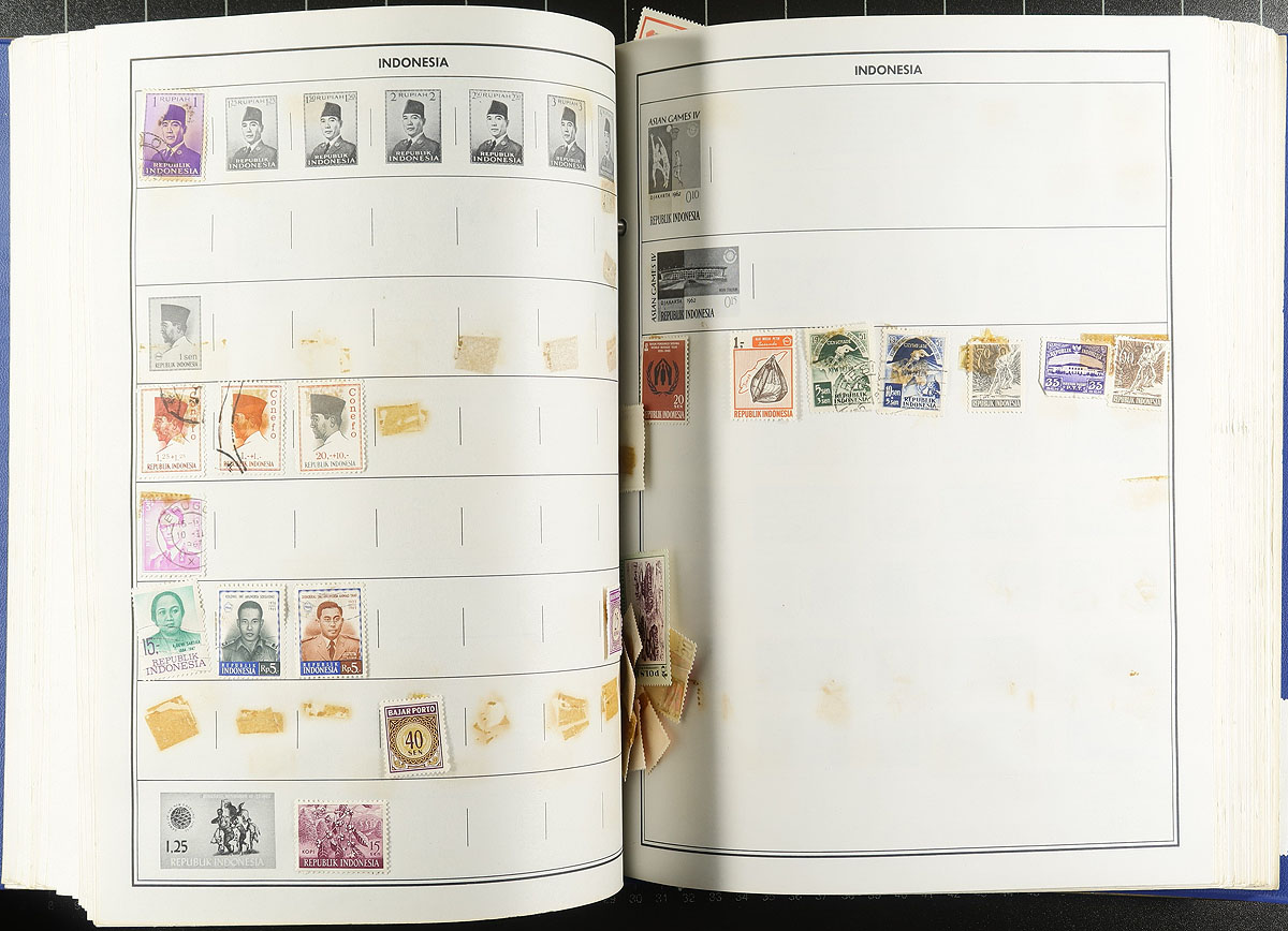 Carton full of thousands of worldwide stamps in a variety of formats. We note several album or stock pages in binders (one containing used Great Britain, the other New Zealand), albums, glassines, 102 cards, and loose stamps. A spot check indicated roughly 50 used Canada souvenir sheets (including a few modern ones), some mint British Commonwealth, and much more, including some items cataloguing $5 to $10 each. A nice winter project. Estimate =