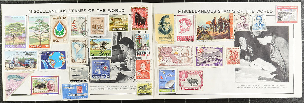 Carton full of thousands of worldwide stamps in a variety of formats. We note several album or stock pages in binders (one containing used Great Britain, the other New Zealand), albums, glassines, 102 cards, and loose stamps. A spot check indicated roughly 50 used Canada souvenir sheets (including a few modern ones), some mint British Commonwealth, and much more, including some items cataloguing $5 to $10 each. A nice winter project. Estimate =