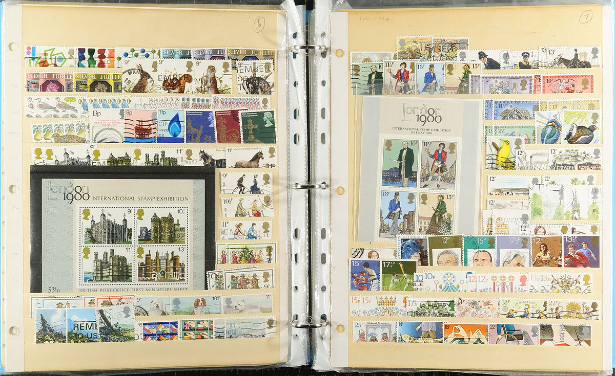 Carton full of thousands of worldwide stamps in a variety of formats. We note several album or stock pages in binders (one containing used Great Britain, the other New Zealand), albums, glassines, 102 cards, and loose stamps. A spot check indicated roughly 50 used Canada souvenir sheets (including a few modern ones), some mint British Commonwealth, and much more, including some items cataloguing $5 to $10 each. A nice winter project. Estimate =