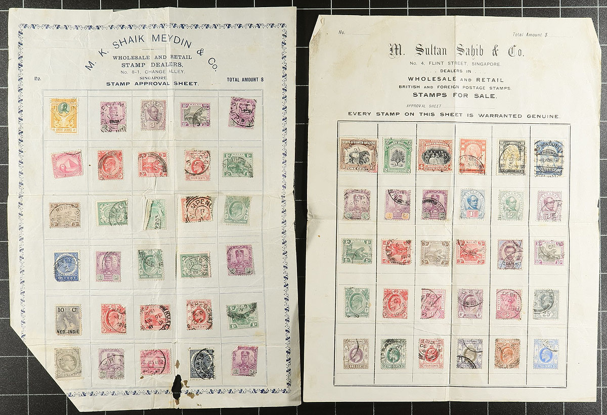 Eclectic box full of useful worldwide material, as received, and contains many hundreds of stamps in a variety of formats, including old-time approval parchment pages from Asia, album pages, 102 cards, loose stamps on and off paper, and more. We note better representation from China, Hong Kong (Victoria era up to the 1960's on several album pages, including used 1935 Silver Wedding set), Japan, and more, along with modern used Canada, used Switzerland and United States, etc. A very cursory check of material indicated items cataloguing $5 to $10 each, leaving potential finds to the dedicated collector. Should be a fun lot for worldwide collectors. Estimate =