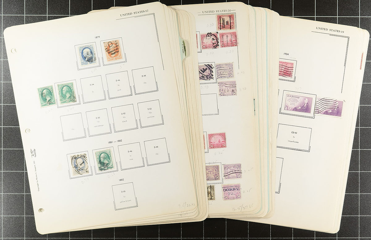 Eclectic box full of useful worldwide material, as received, and contains many hundreds of stamps in a variety of formats, including old-time approval parchment pages from Asia, album pages, 102 cards, loose stamps on and off paper, and more. We note better representation from China, Hong Kong (Victoria era up to the 1960's on several album pages, including used 1935 Silver Wedding set), Japan, and more, along with modern used Canada, used Switzerland and United States, etc. A very cursory check of material indicated items cataloguing $5 to $10 each, leaving potential finds to the dedicated collector. Should be a fun lot for worldwide collectors. Estimate =